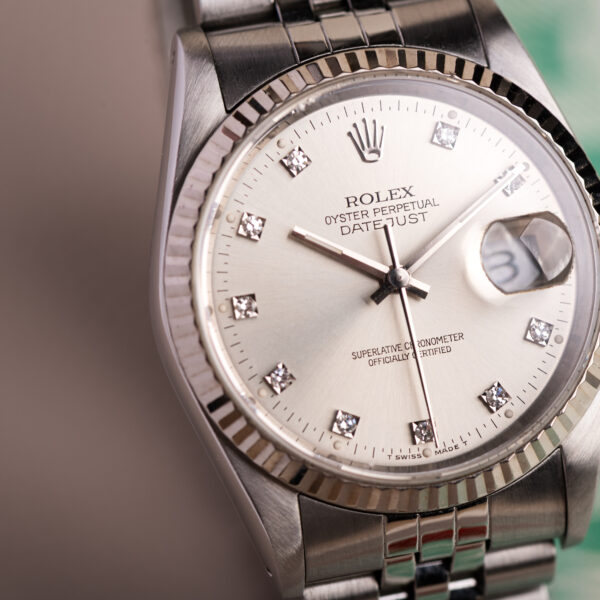 Rolex 16234 to model z lat 1988–2005, który łączy stalową kopertę z karbowanym bezelem z białego złota i automatycznym mechanizmem kaliber 3135. Zegarek Rolex Datejust 16234 to doskonała propozycja dla osób ceniących luksus i klasyczną estetykę w codziennym wydaniu.