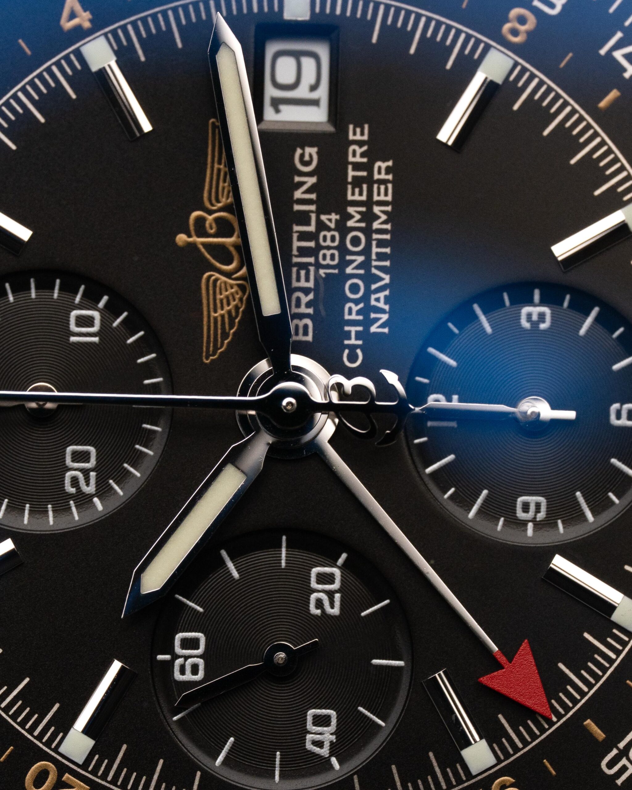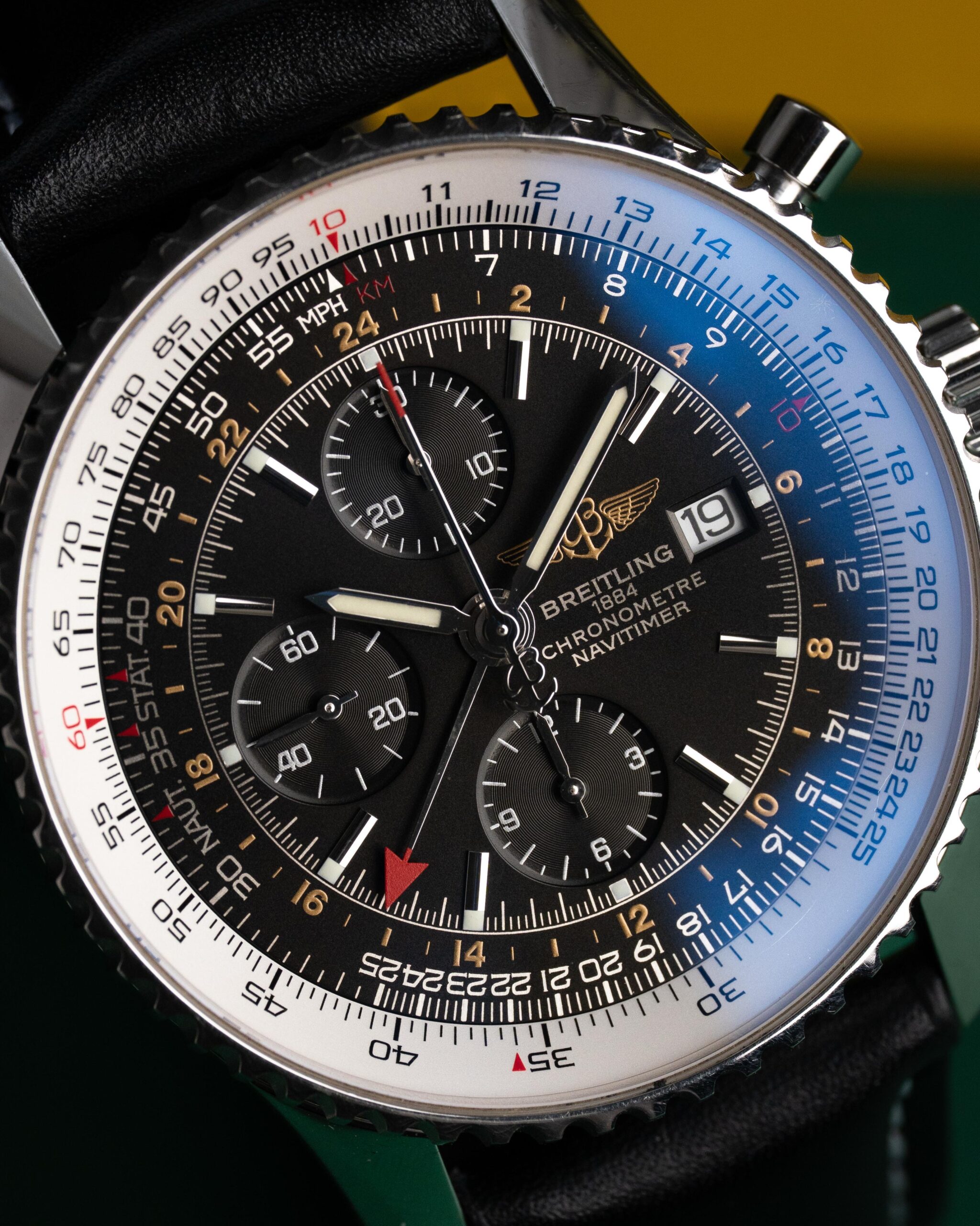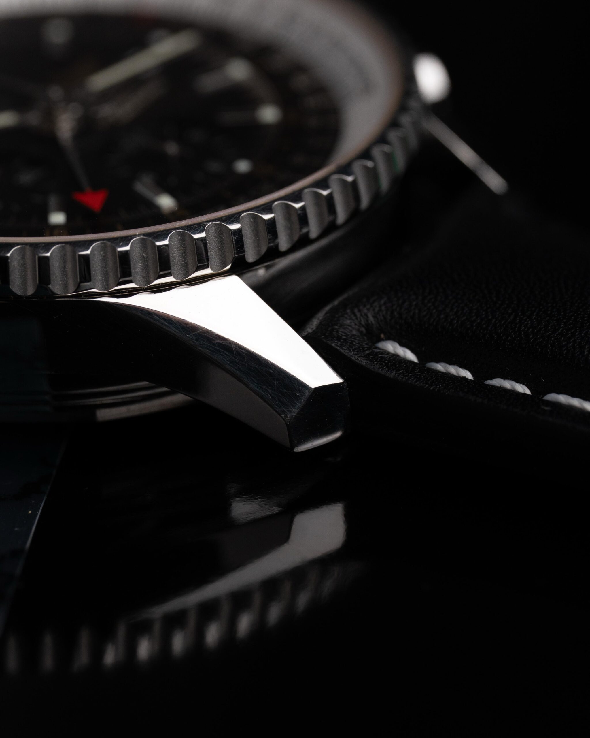 Stalowa koperta o średnicy 46 mm nadaje zegarkowi wyrazistą, profesjonalną prezencję, a charakterystyczna obrotowa luneta z logarytmiczną podziałką – tzw. suwak nawigacyjny – pozwala na wykonywanie obliczeń lotniczych, z których słynie Navitimer od 1952 roku.