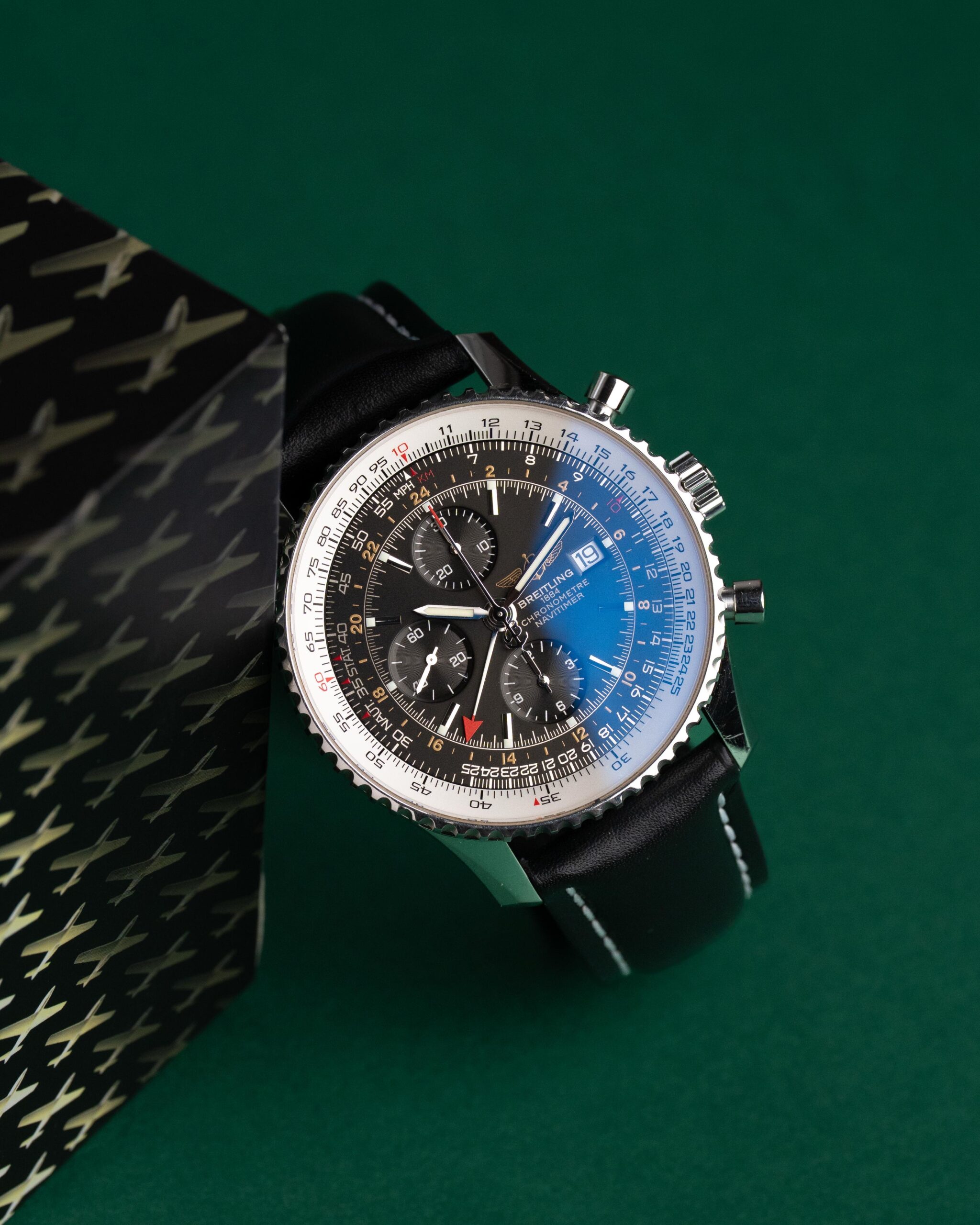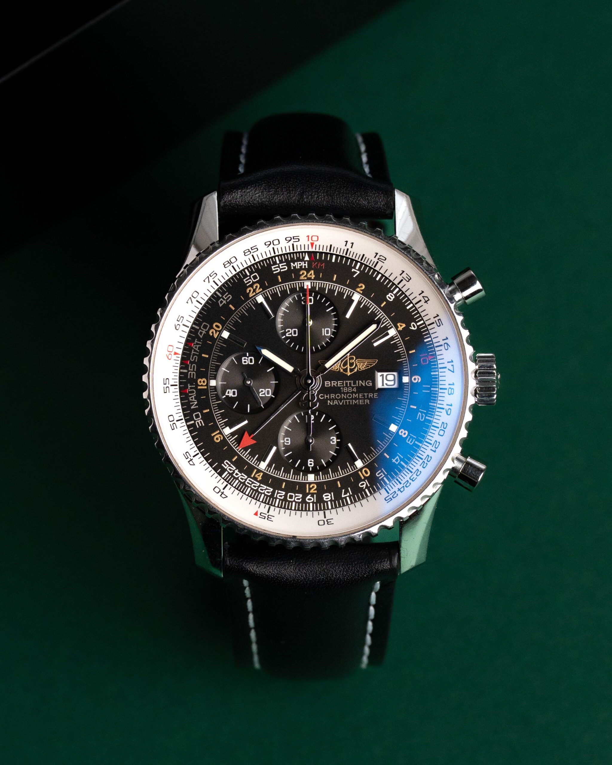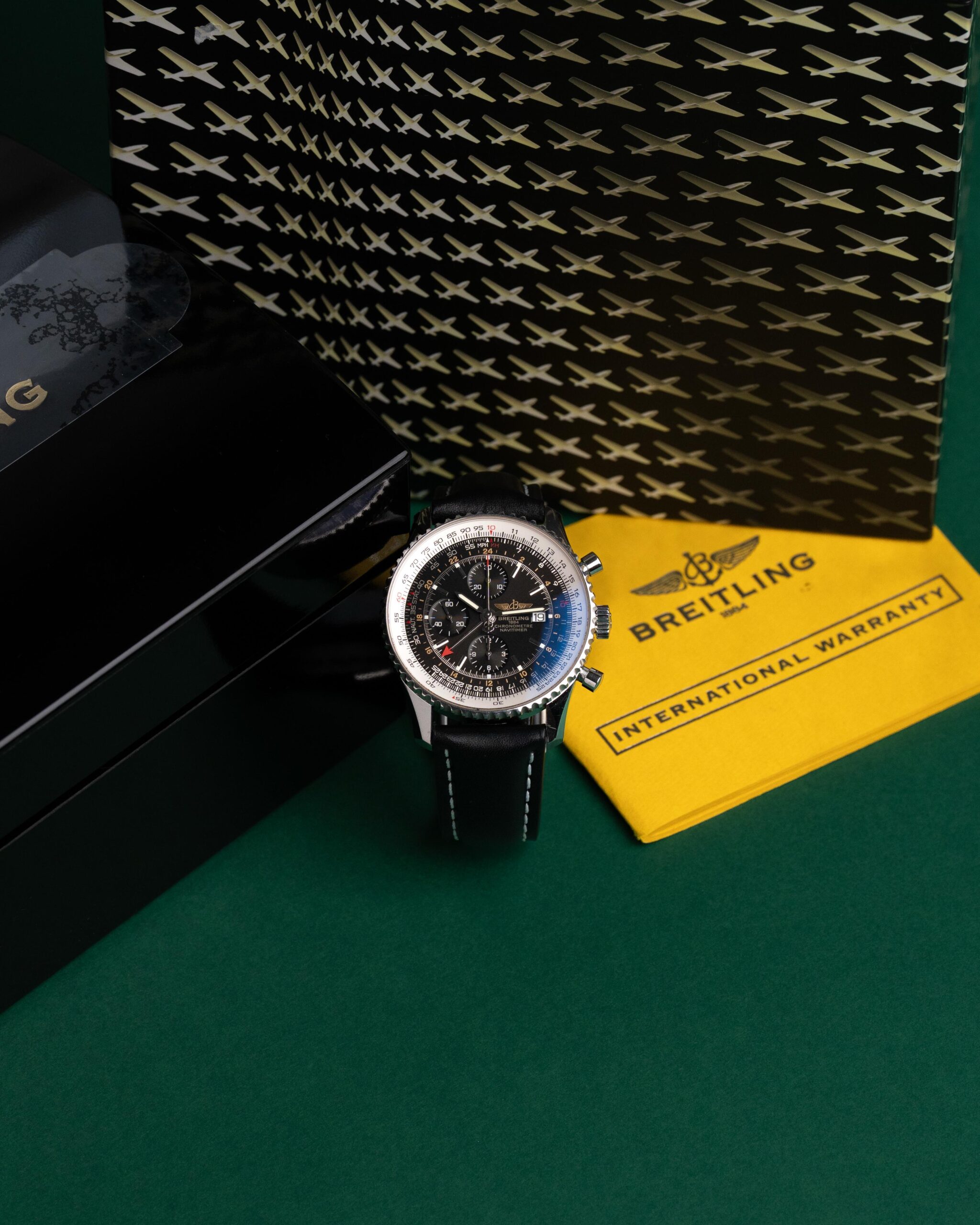 Stalowa koperta o średnicy 46 mm nadaje zegarkowi wyrazistą, profesjonalną prezencję, a charakterystyczna obrotowa luneta z logarytmiczną podziałką – tzw. suwak nawigacyjny – pozwala na wykonywanie obliczeń lotniczych, z których słynie Navitimer od 1952 roku.