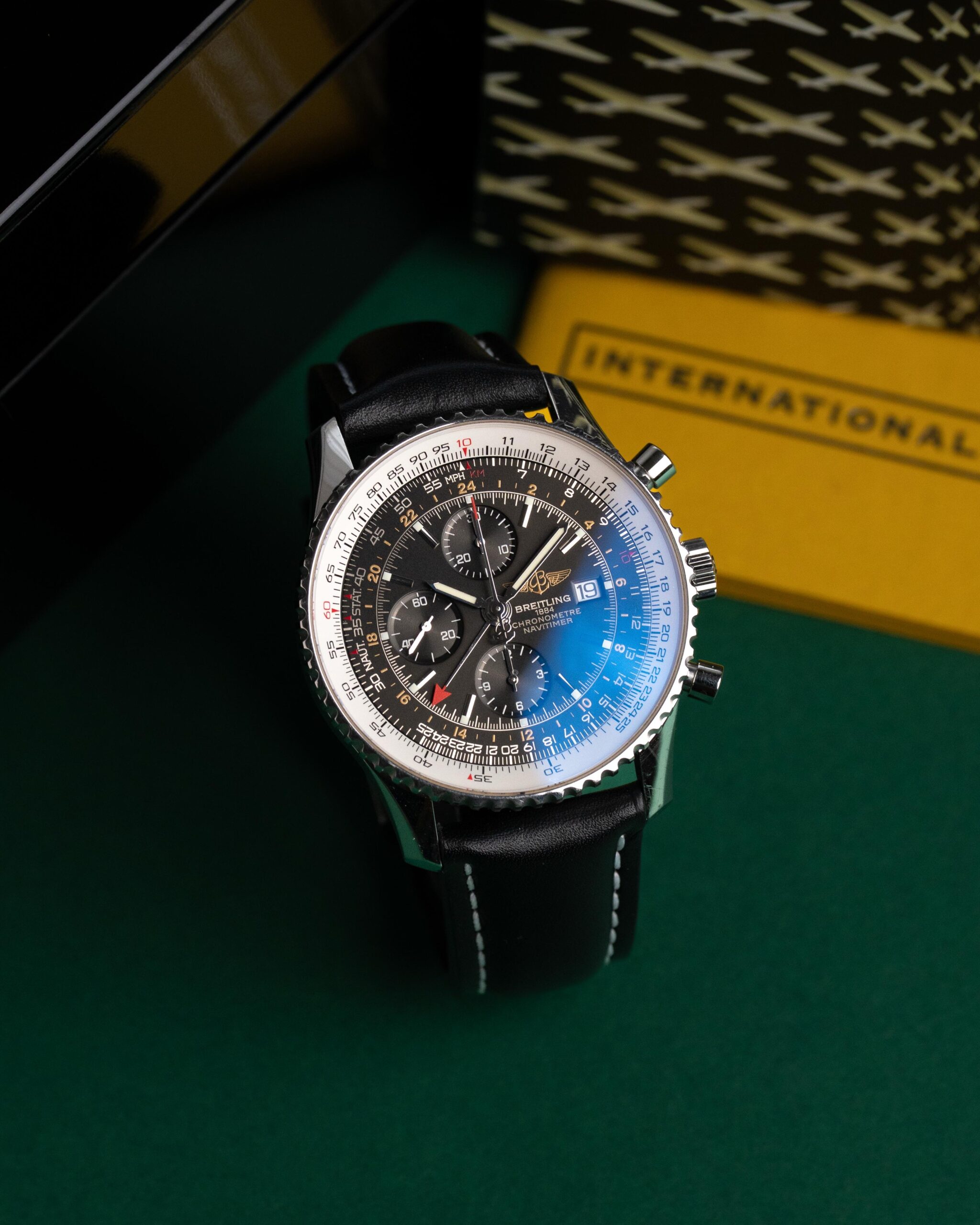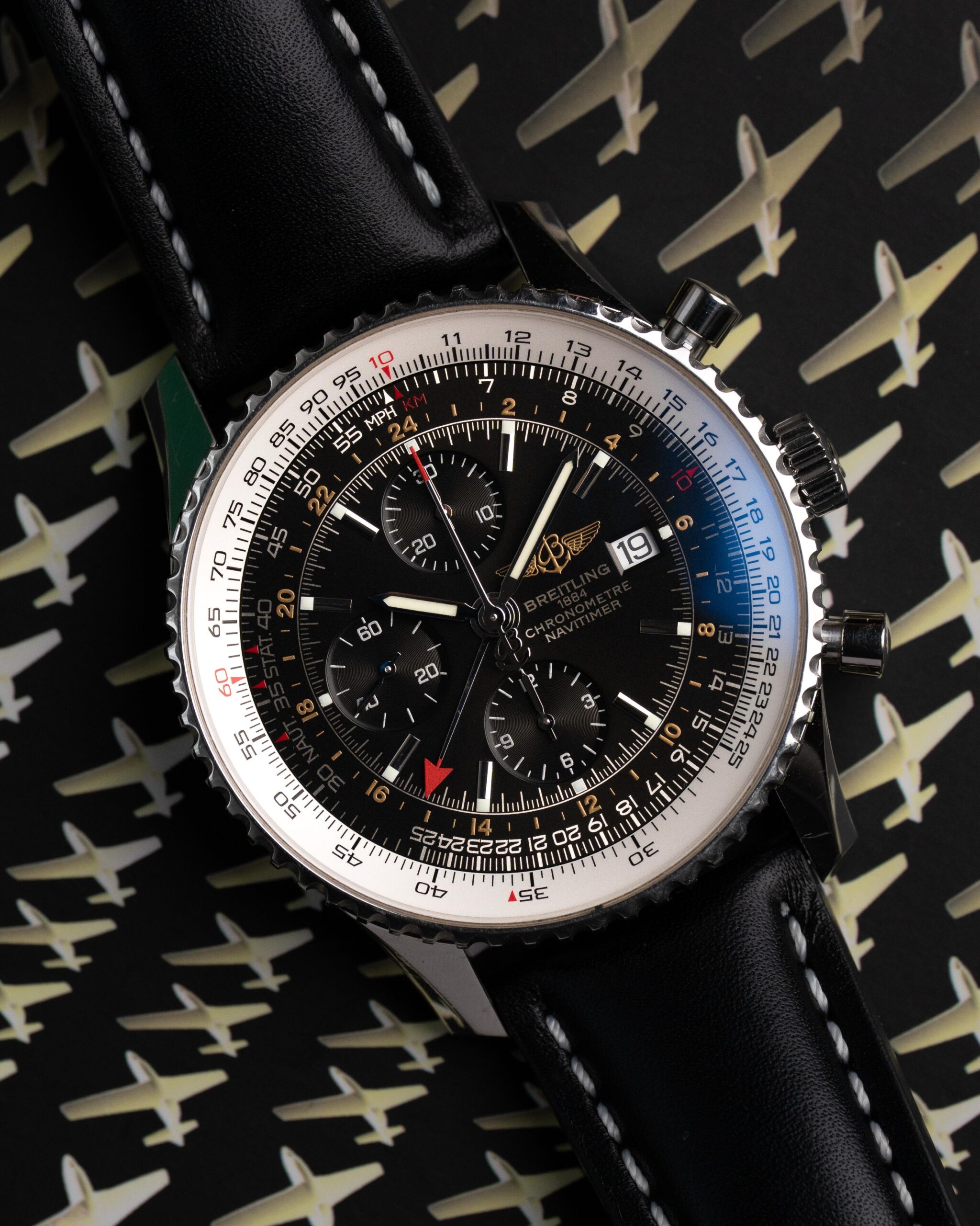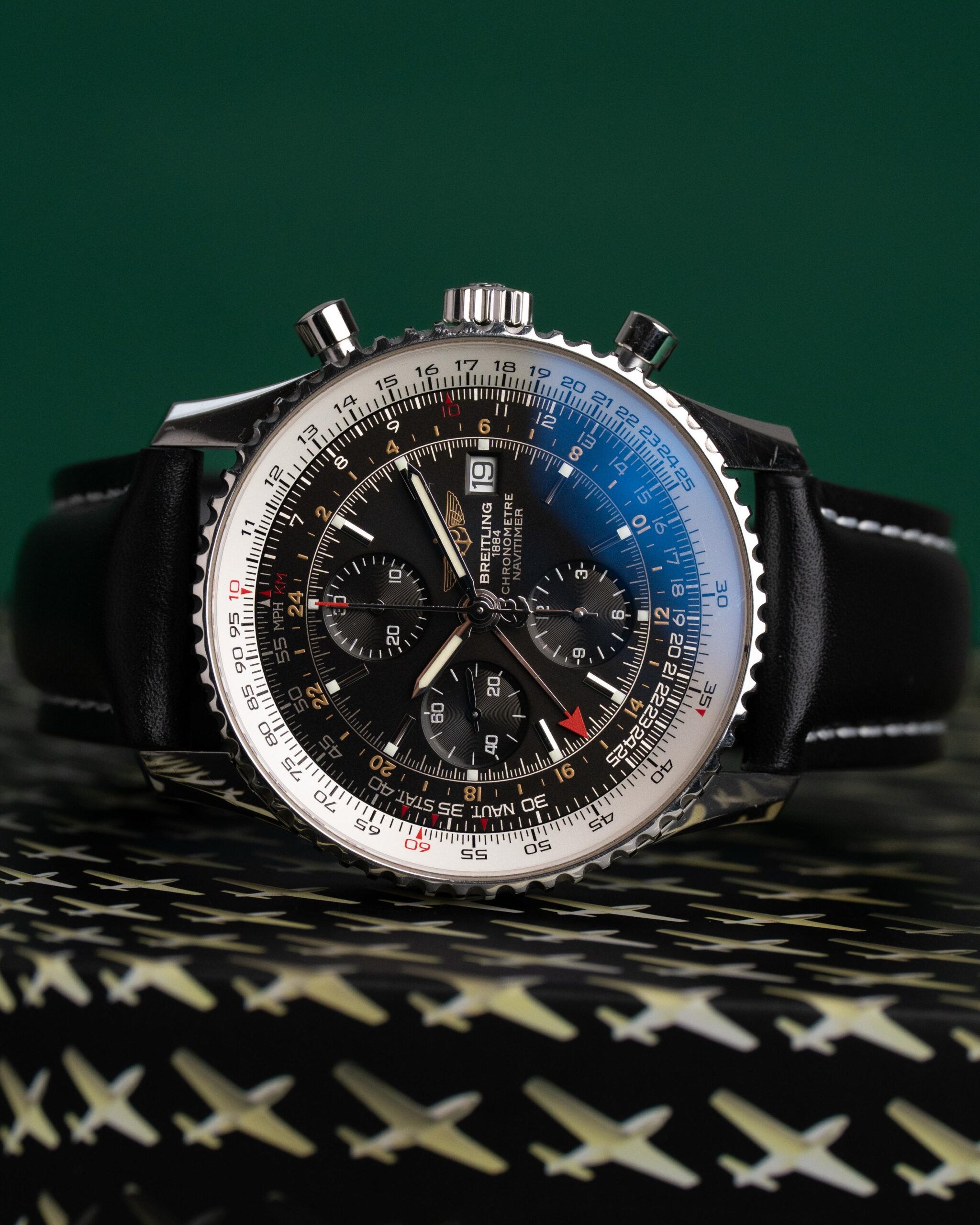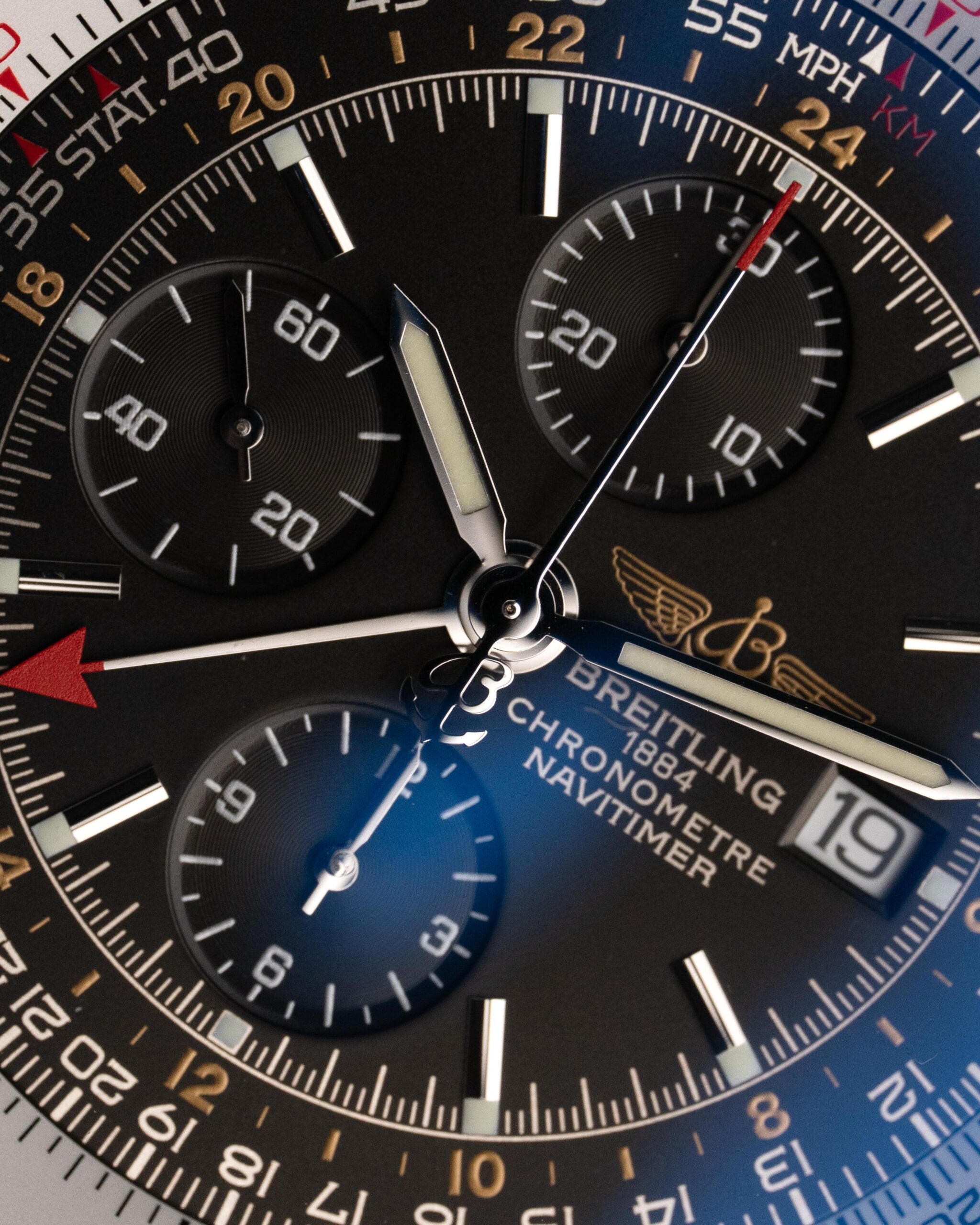 Breitling Navitimer A24322 to ikona w świecie zegarków – połączenie historycznej funkcji suwaka logarytmicznego, chronografu oraz GMT w jednym, perfekcyjnie wykonanym czasomierzu.