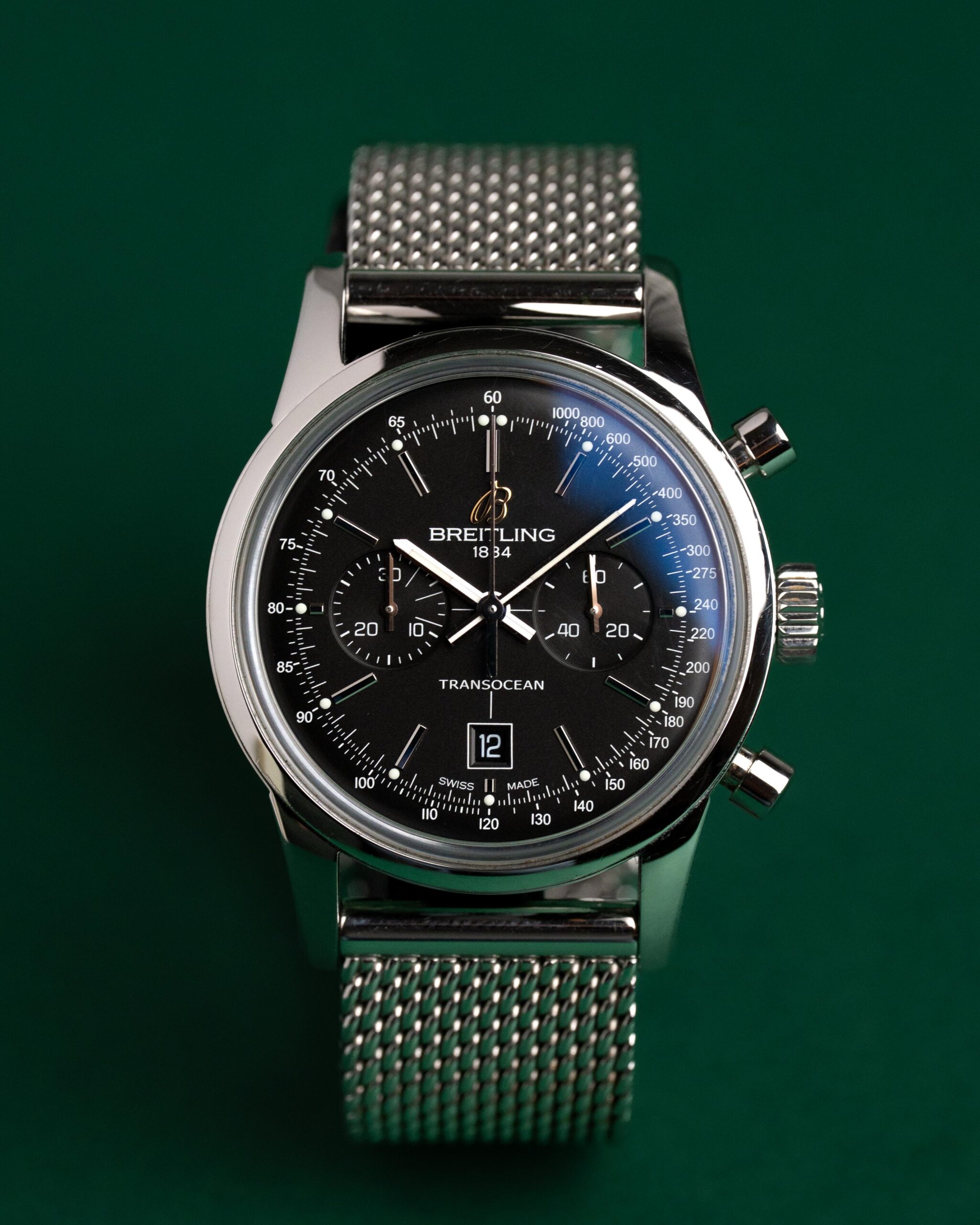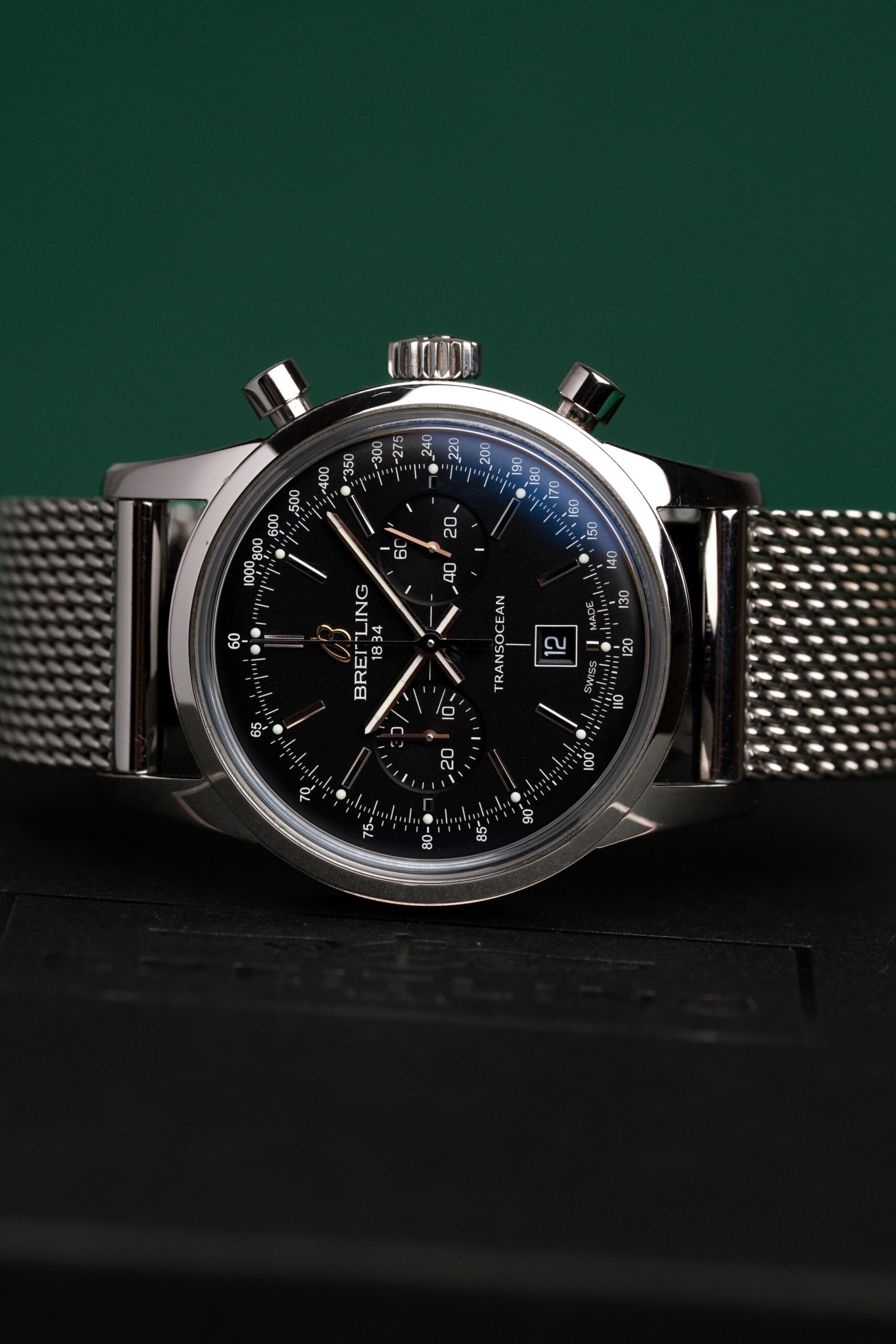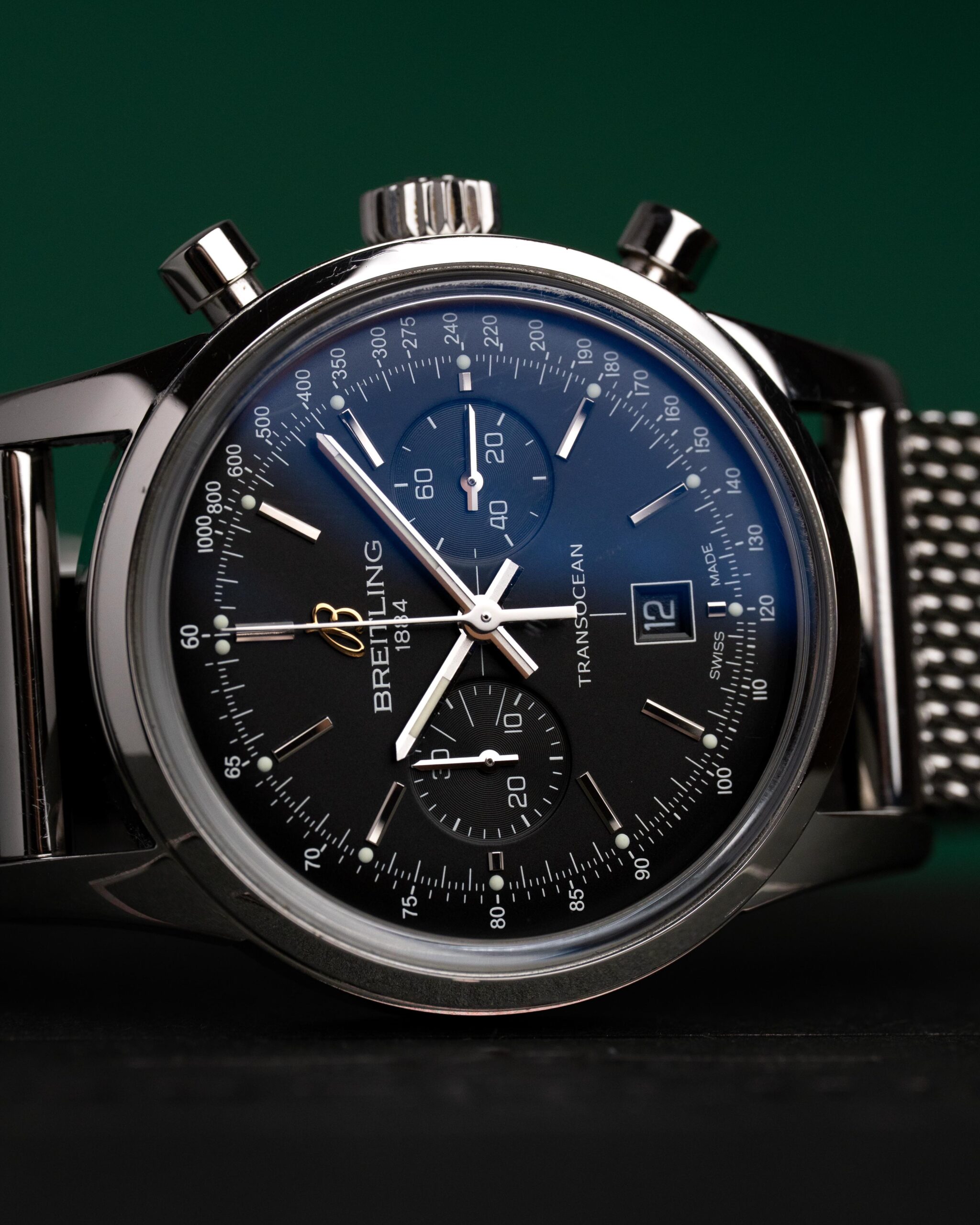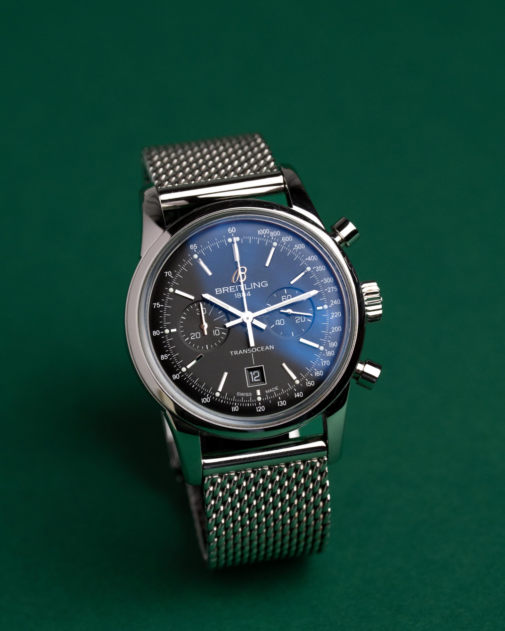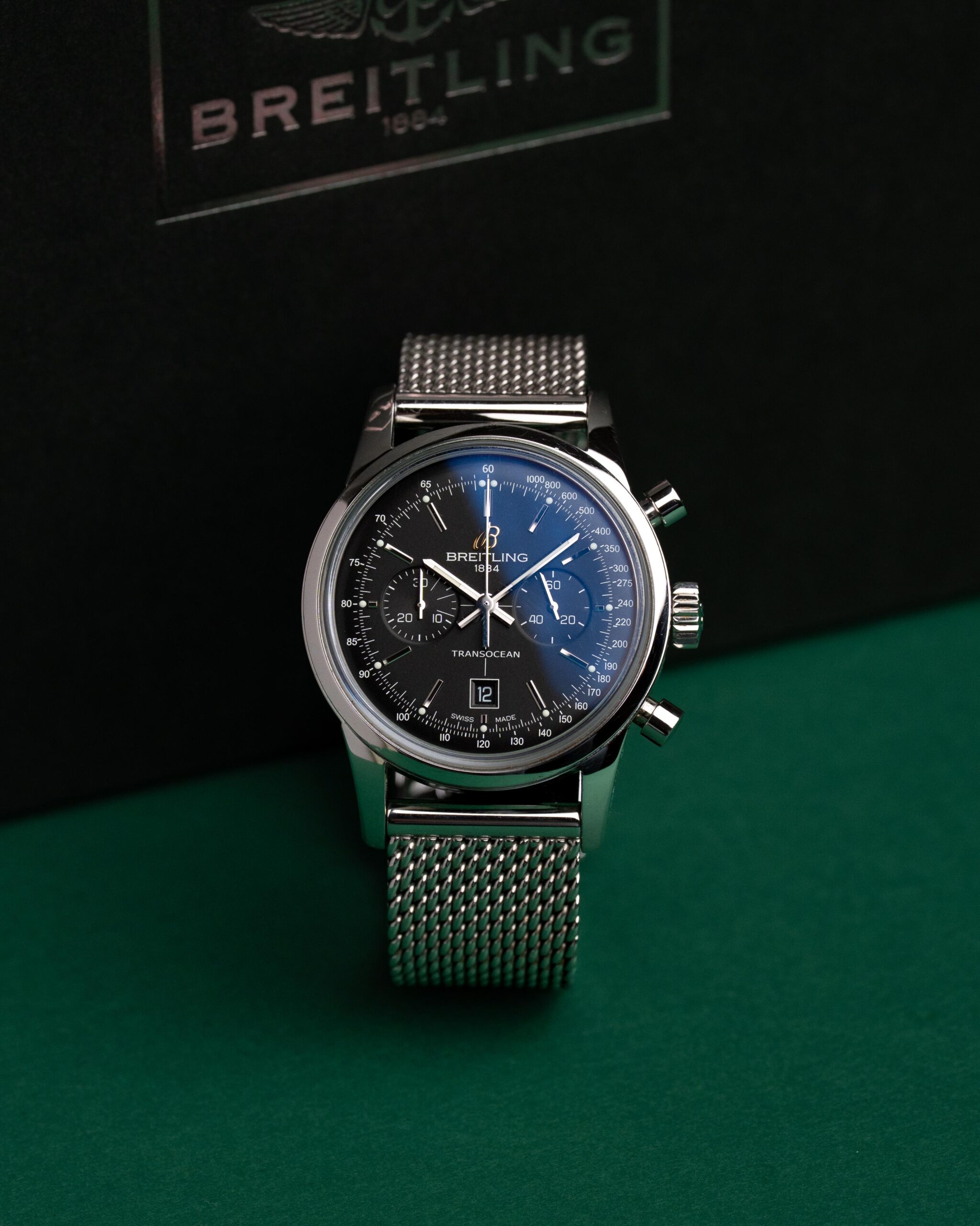 Breitling Transocean Chronograph A41310 to klasyczny, stylowy chronograf o kompaktowej i uniwersalnej średnicy — zegarek, który łączy elegancję vintage z nowoczesną precyzją.