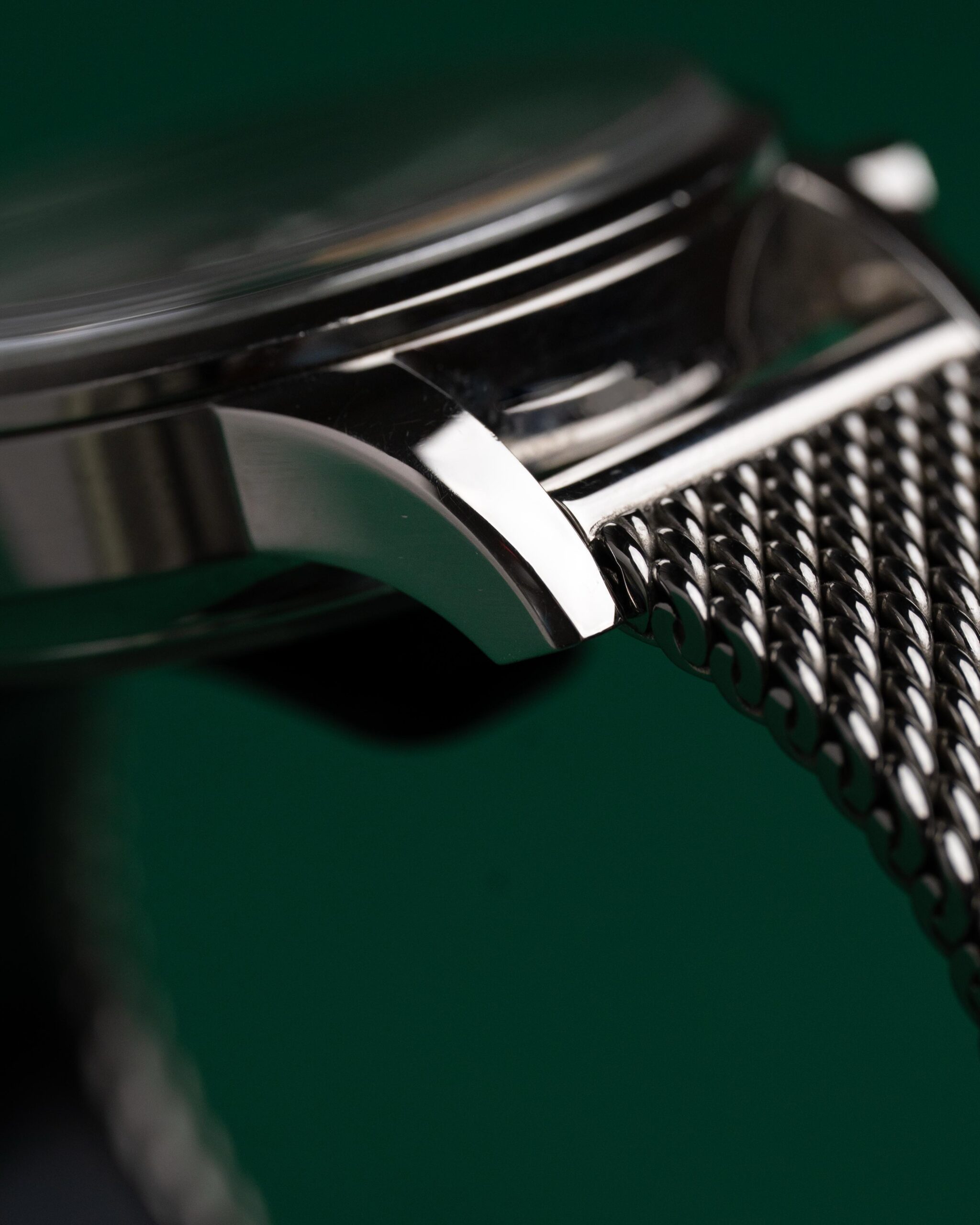 Koperta o średnicy 38 mm, wykonana ze stali nierdzewnej, zapewnia świetne wyważenie między obecnością na nadgarstku a komfortem użytkowania.