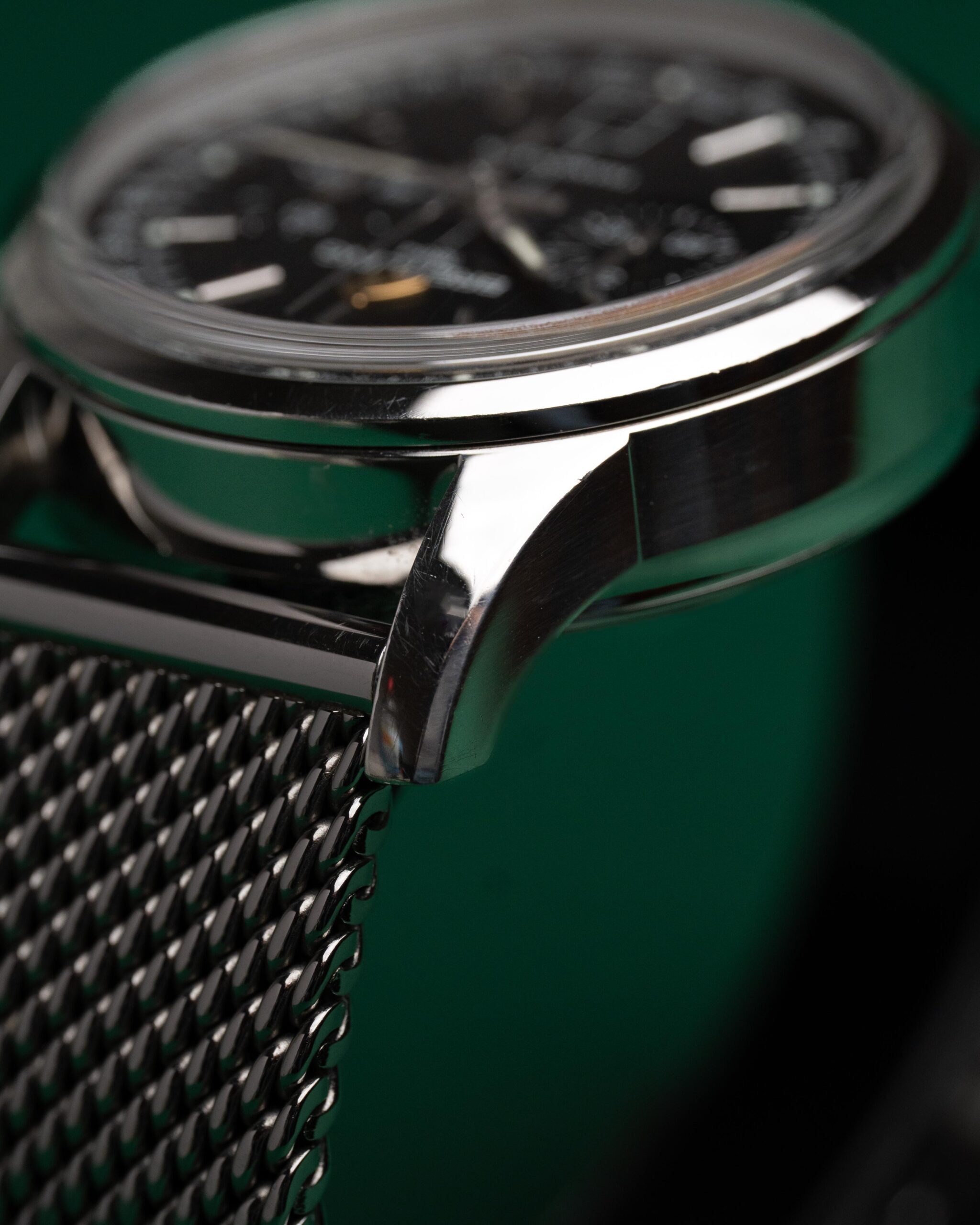 Zegarek napędzany jest przez automatyczny mechanizm Calibre 41, oferujący ok. 42 godziny rezerwy chodu. Indeksy oraz smukłe wskazówki podkreślają elegancki profil, a szkło szafirowe zapewnia trwałą ochronę. Zegarek wyposażono w wodoszczelność do 100 metrów, co czyni go nie tylko stylowym, ale także praktycznym rozwiązaniem na co dzień.