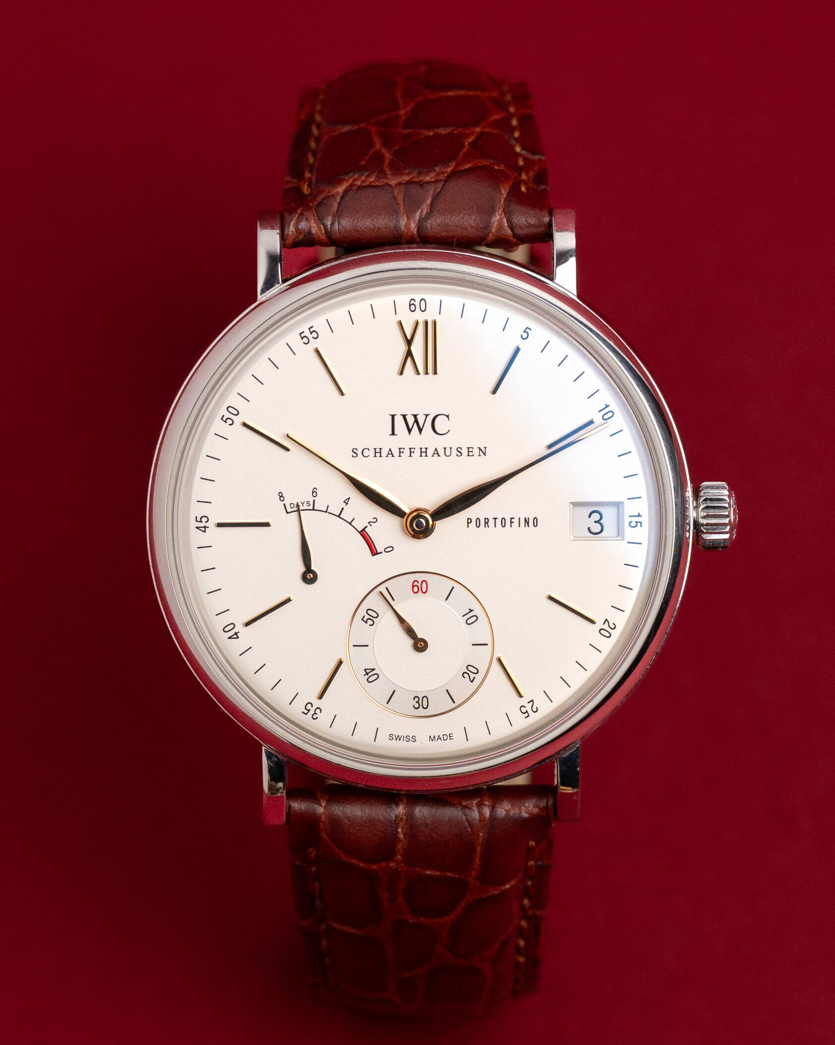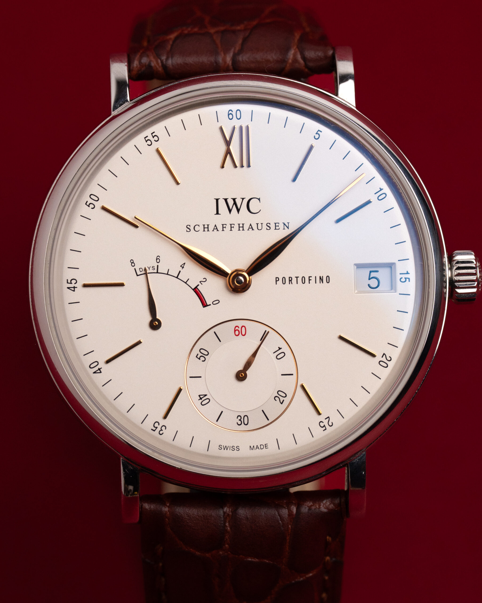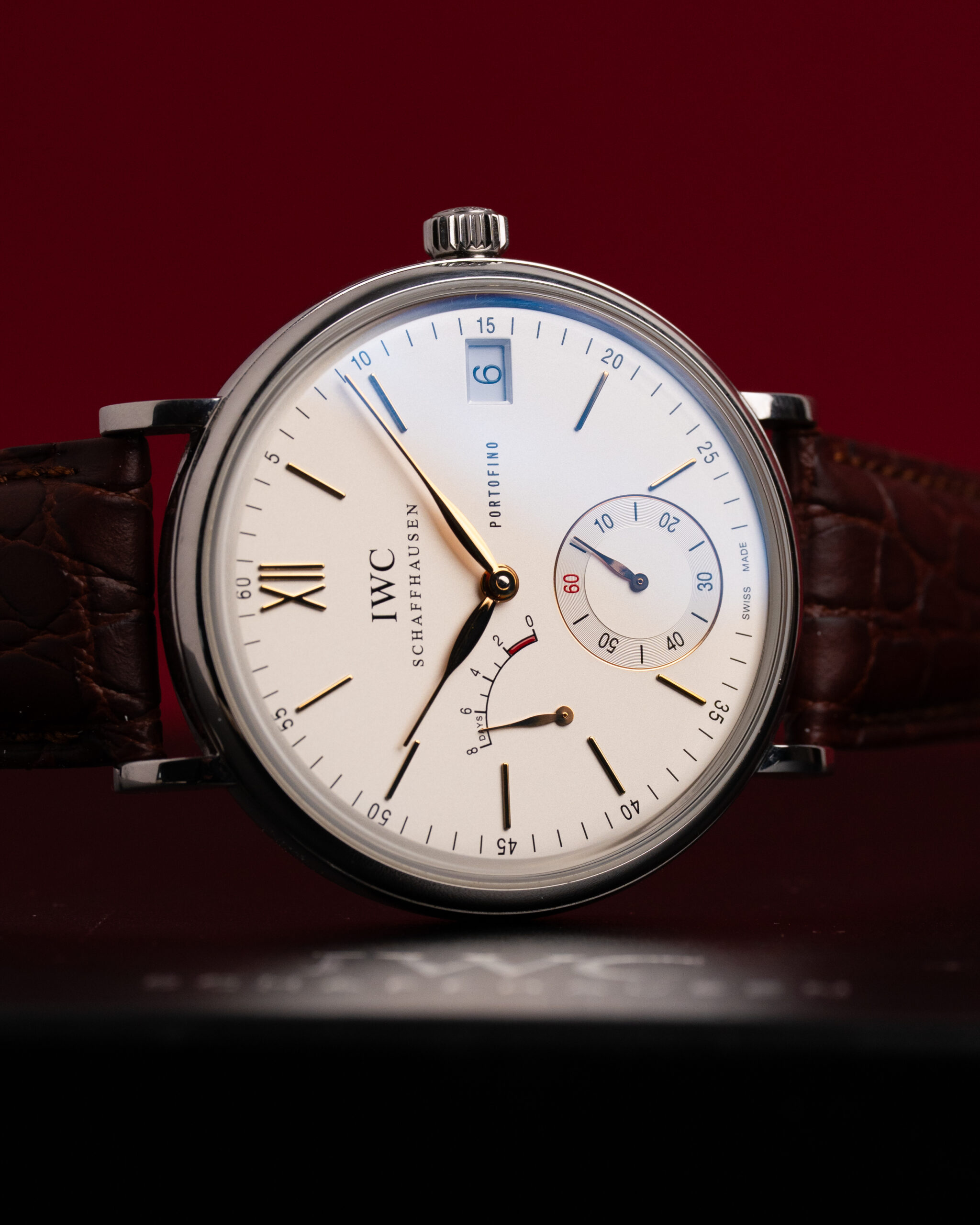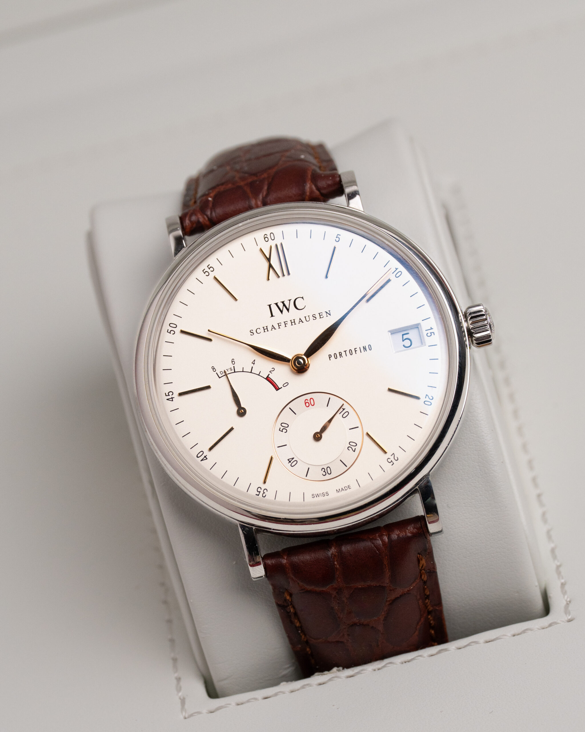 IWC Portofino IW510103 to elegancki zegarek z ręcznie nakręcanym mechanizmem kaliber 59210, oferującym imponującą 8-dniową rezerwę chodu. Koperta o średnicy 45 mm wykonana ze stali szlachetnej skrywa srebrną tarczę z subtelną małą sekundą oraz wskaźnikiem rezerwy chodu. Klasyczna sylwetka i wyrafinowane detale czynią ten model idealnym wyborem dla miłośników dyskretnego luksusu i ponadczasowego stylu.