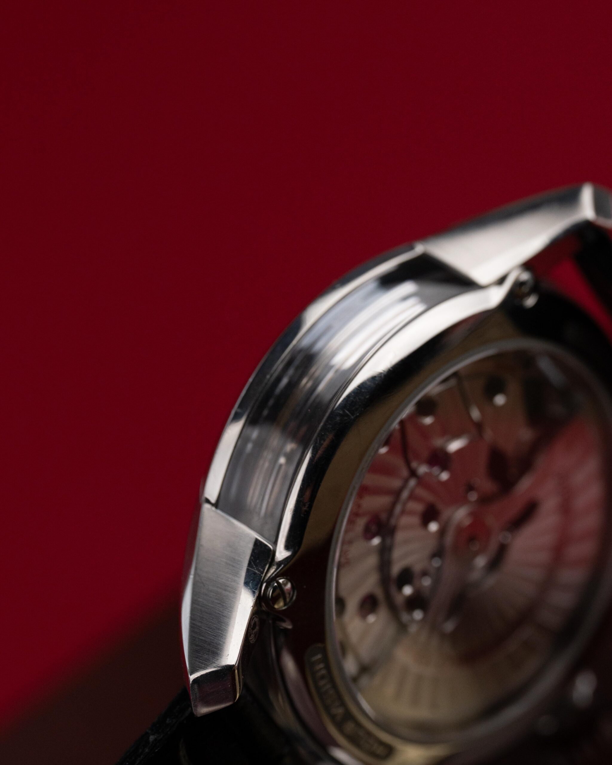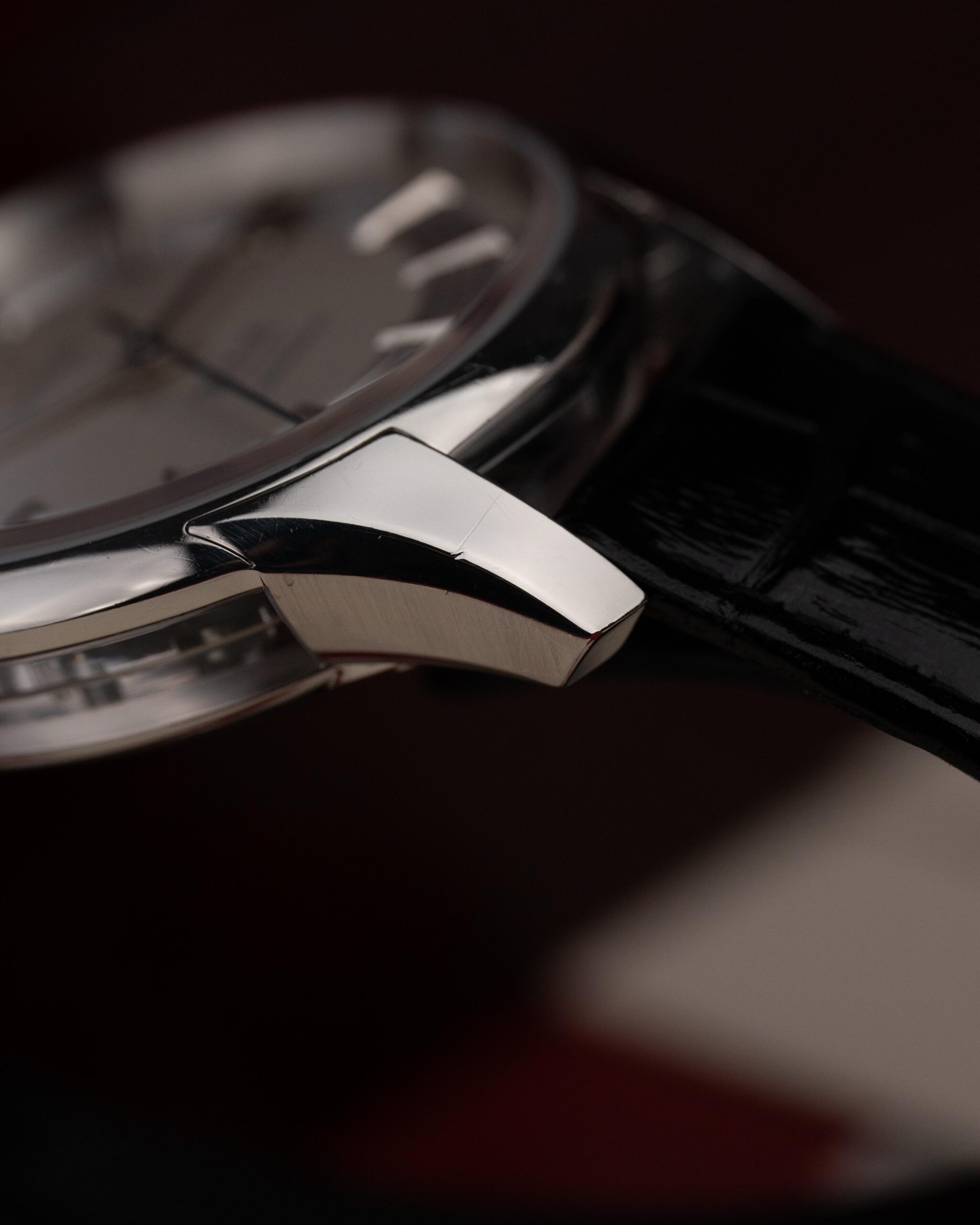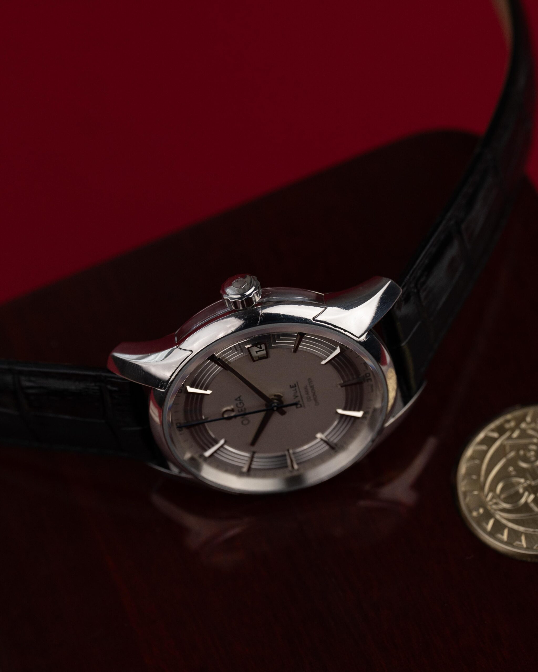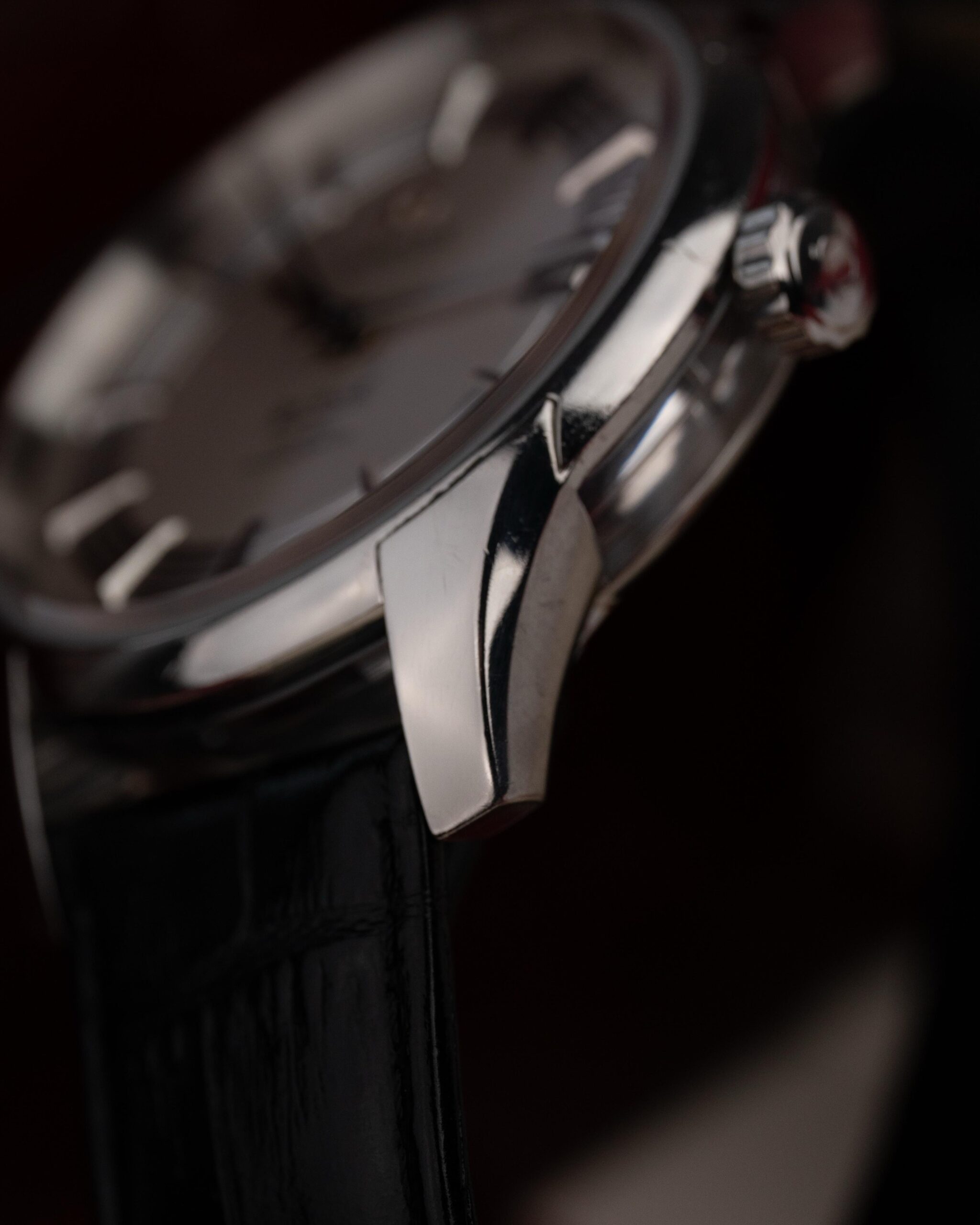 Model napędzany jest automatycznym mechanizmem Omega Co-Axial Calibre 8500, zapewniającym wysoką precyzję oraz około 60 godzin rezerwy chodu. Stalowa koperta o średnicy 41 mm została zestawiona z srebrną tarczą, na której znajdują się eleganckie indeksy, mała sekunda oraz wskaźnik rezerwy chodu, podkreślające klasyczny charakter zegarka.