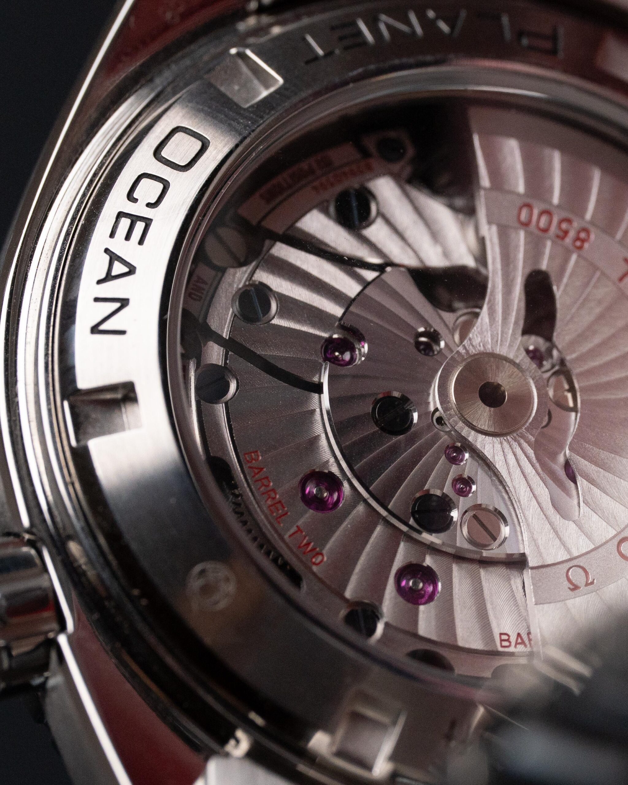 Wewnątrz pracuje automatyczny mechanizm Omega Co-Axial Calibre 8500, znany z wyjątkowej precyzji, odporności na wstrząsy i długiej, 60-godzinnej rezerwy chodu. Mechanizm można podziwiać przez przeszklony dekiel z szafirowego szkła, ukazujący perfekcyjne wykończenie i zdobienia rotora.