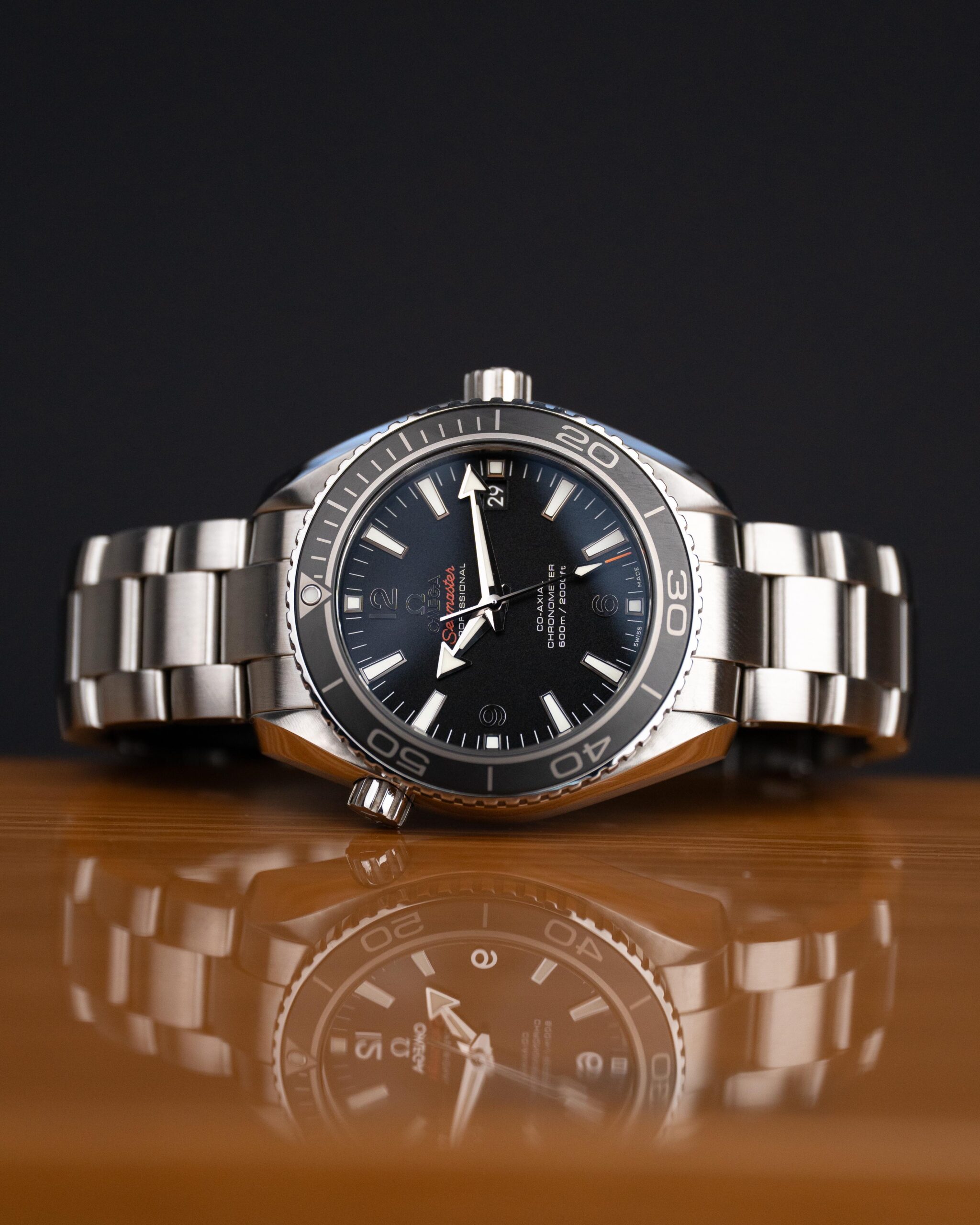 Sercem zegarka jest automatyczny mechanizm Omega Co-Axial Calibre 8500, zapewniający wysoką precyzję i niezawodność działania. Stalowa koperta o średnicy 42 mm została zestawiona z czarną tarczą, na której duże indeksy oraz wskazówki z masą luminescencyjną gwarantują doskonałą czytelność.