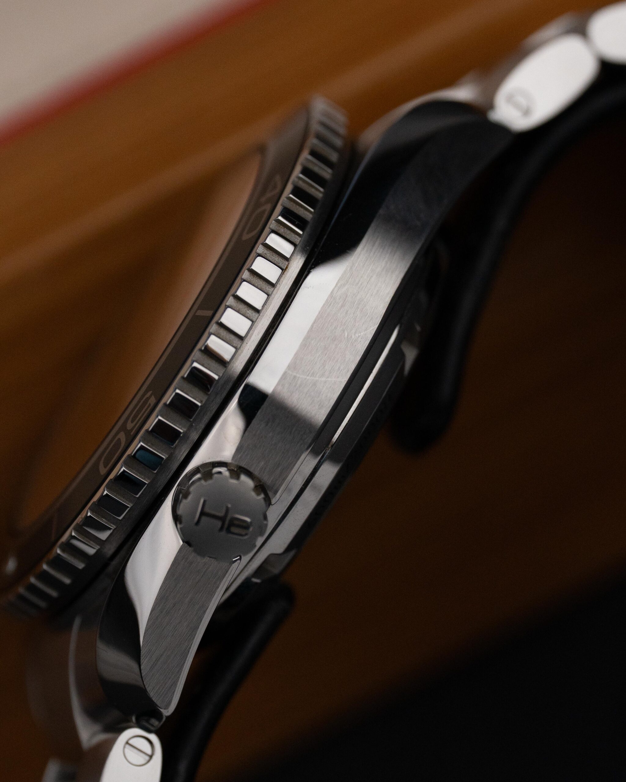 Model wyposażono w jednokierunkowy, obrotowy bezel nurkowy, datownik na godzinie 3 oraz zawór helowy, co podkreśla jego profesjonalne przeznaczenie. Szafirowe szkło z powłoką antyrefleksyjną chroni cyferblat, a stalowa bransoleta zapewnia trwałość i komfort użytkowania.