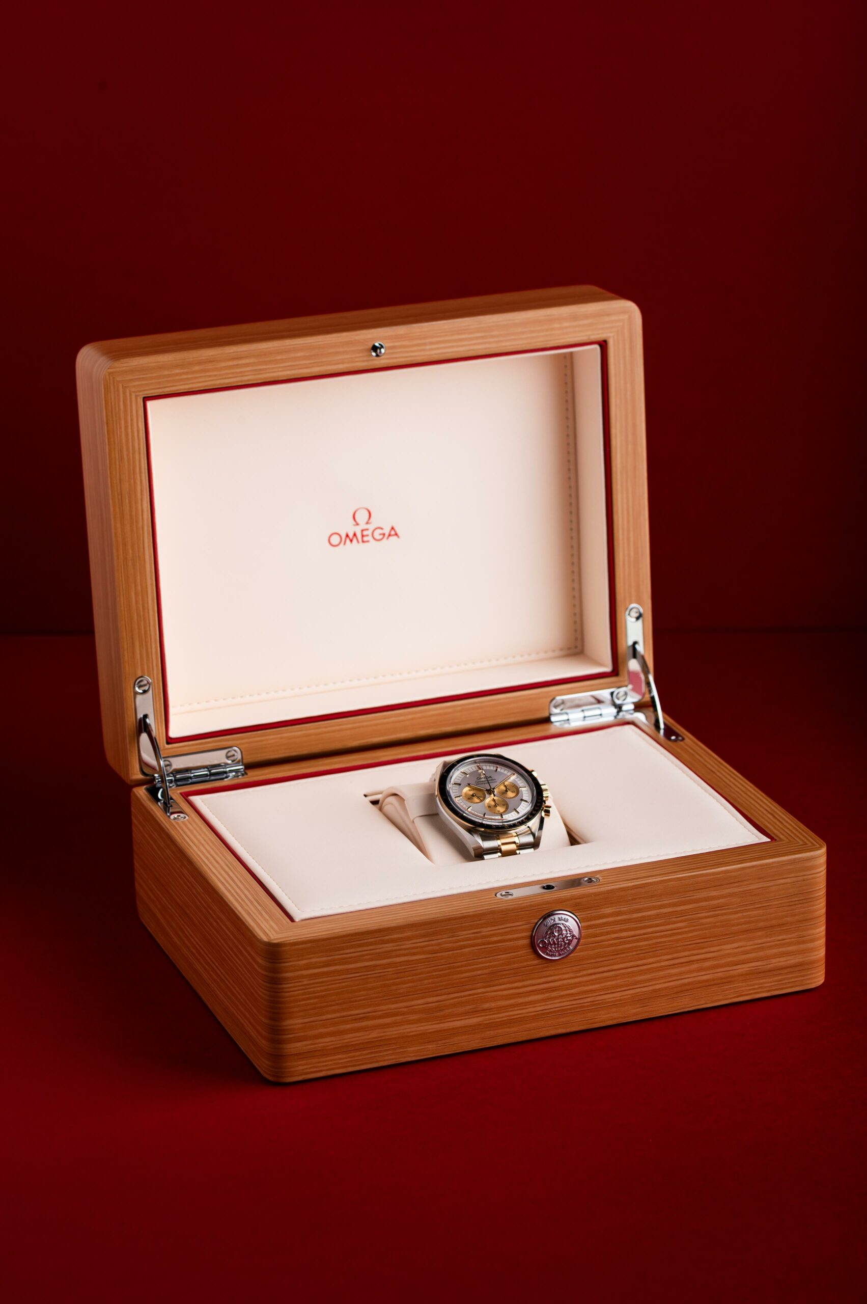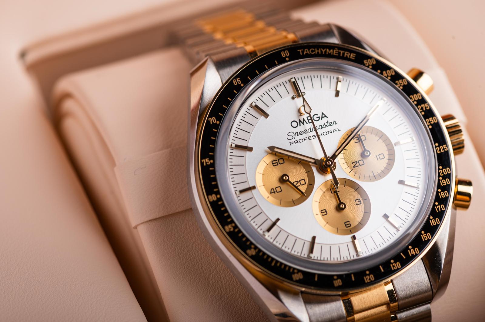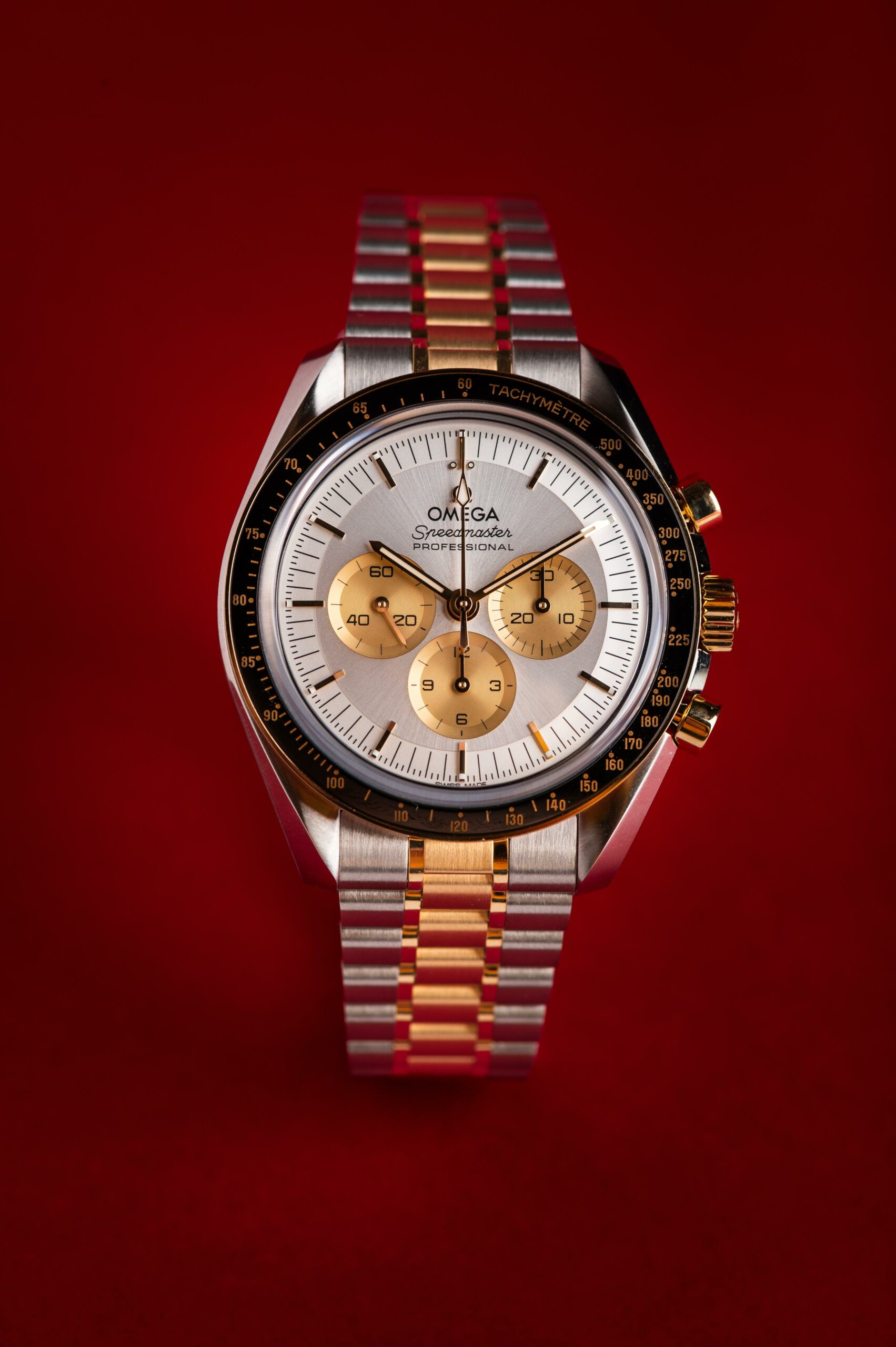 Omega Speedmaster Moonwatch 310.20.42.50.02.001 to współczesna odsłona kultowego chronografu inspirowanego misjami księżycowymi. Wyposażony w 42 mm kopertę z połączenia stali i złota Moonshine™, napędzany jest manualnym kalibrem Omega 3861 z certyfikatem Master Chronometer. Model wyróżnia się srebrną tarczą z kontrastującymi złotymi subtarczami, które nadają mu wyrazisty i wyjątkowy charakter. To zegarek, który łączy techniczne dziedzictwo z wyrafinowaną estetyką.