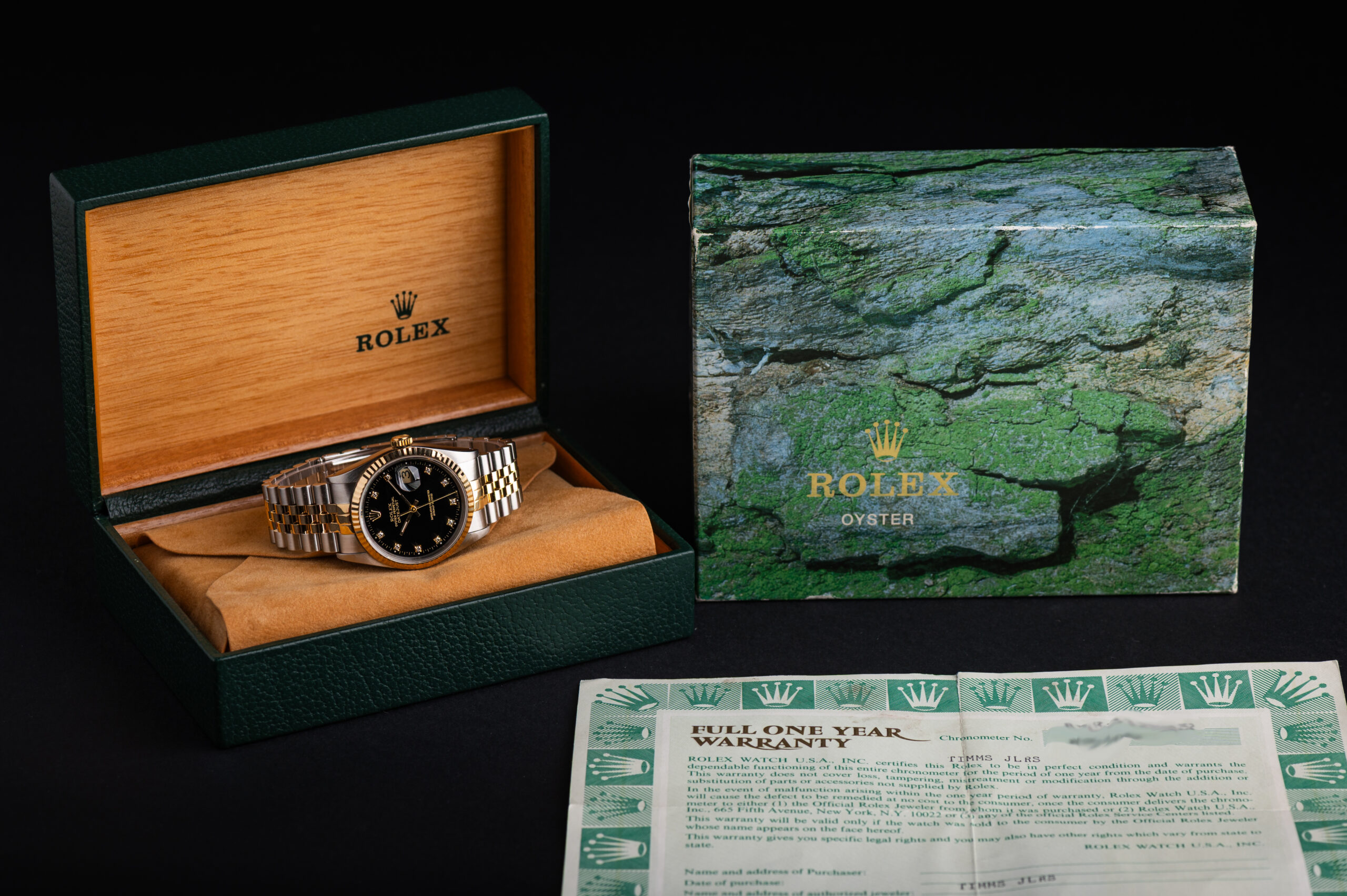 Zegarek Rolex Datejust 16233 był produkowany w latach 1988–2005 i oferuje połączenie klasyki z niezawodnością mechanizmu kaliber 3135. Karbowany bezel z żółtego złota, stalowo-złota konstrukcja i elegancki wygląd czynią z modelu Rolex 16233 jeden z najchętniej wybieranych Datejustów.