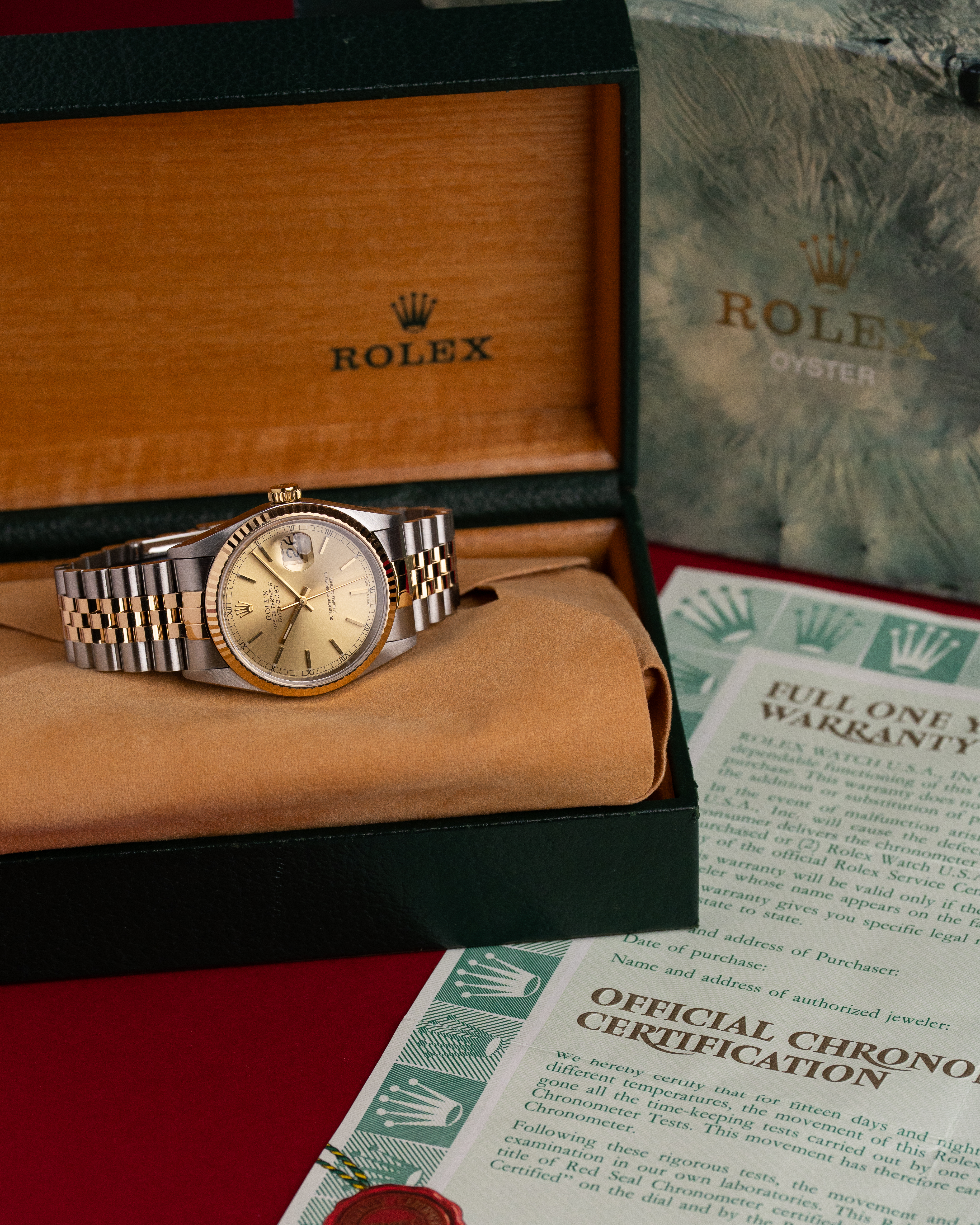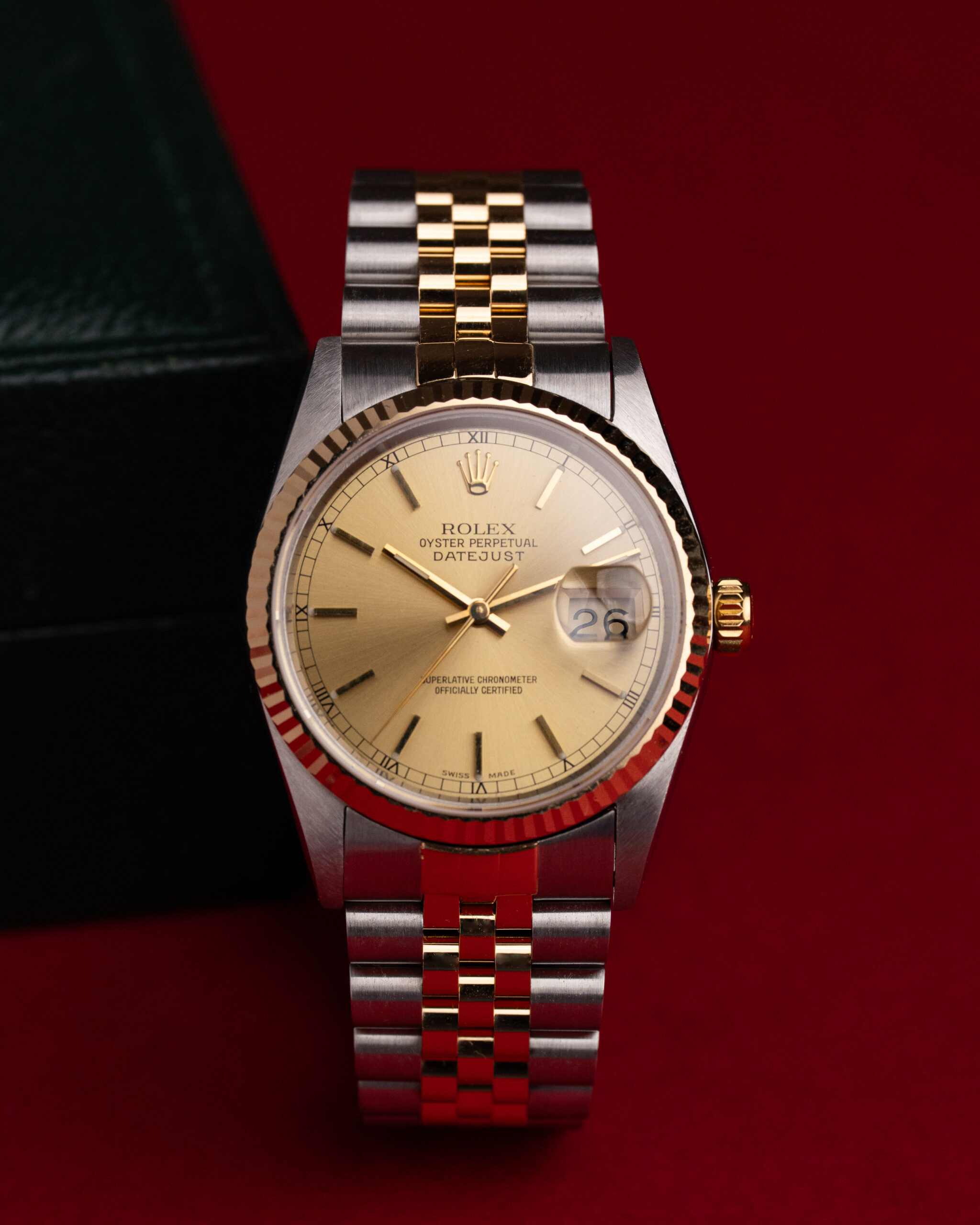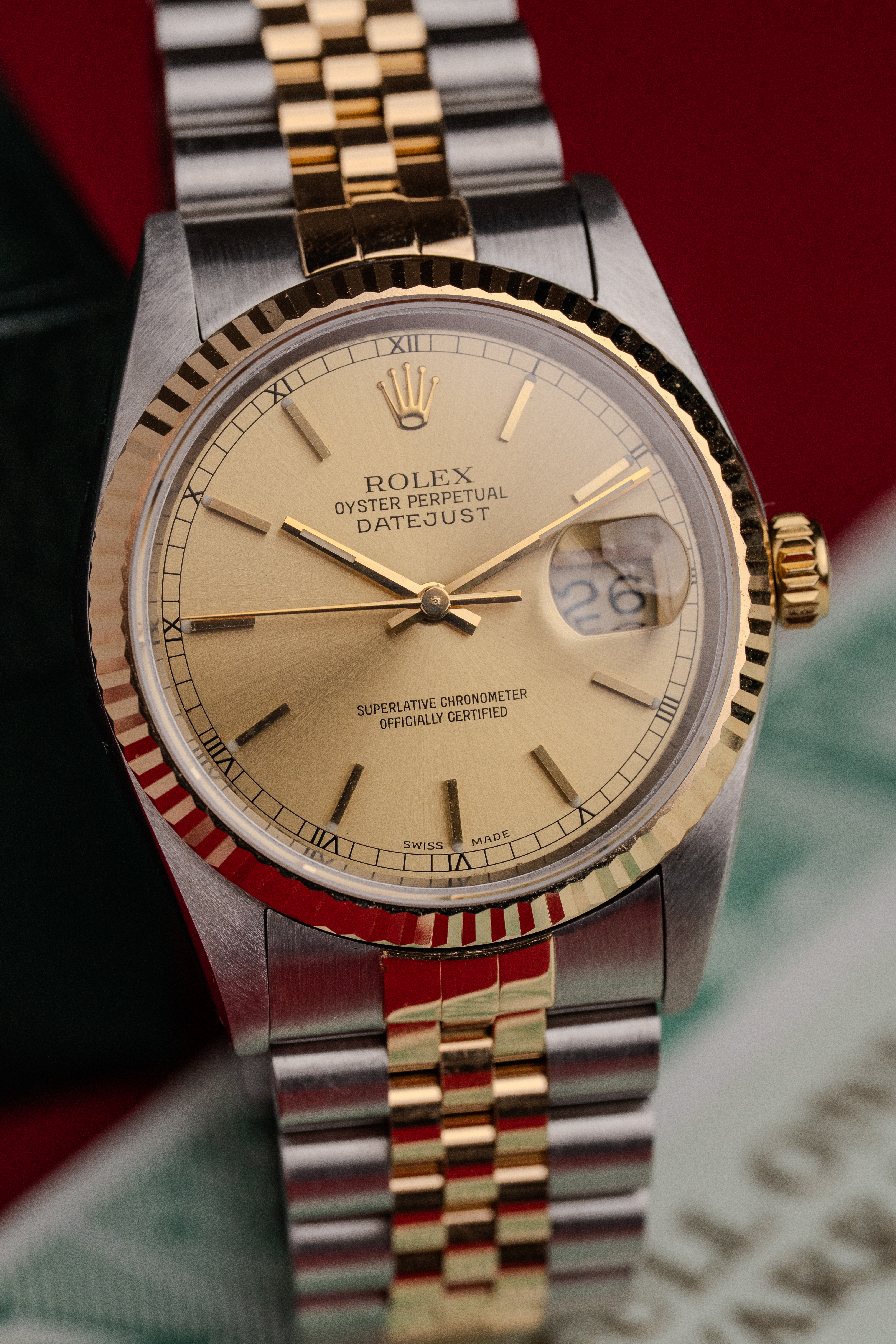 The Rolex Datejust 16233 watch was produced between 1988 and 2005 and offers a combination of classics with the reliability of the Calibre 3135 movement. The fluted yellow gold bezel, steel-gold construction and elegant design make the Rolex 16233 one of the most popular Datejusts.
