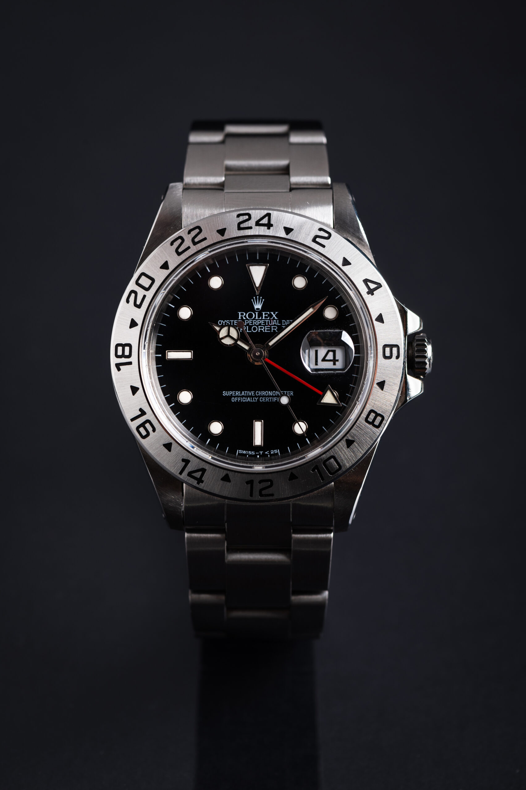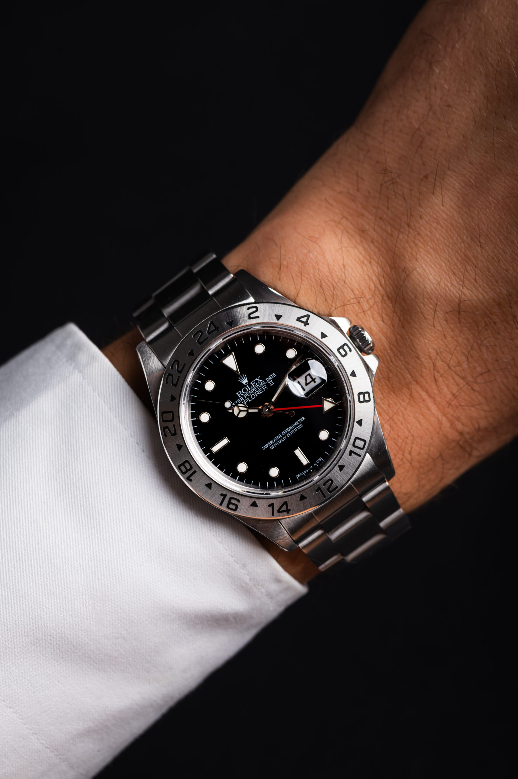 Rolex Explorer II 16570 to wszechstronny zegarek sportowy, produkowany w latach 1989–2011. Model ten oferuje stalową kopertę 40 mm, funkcję GMT oraz mechanizm automatyczny kaliber 3185. Explorer 16570 to idealne połączenie funkcjonalności i klasycznego designu, cenione zarówno przez podróżników, jak i kolekcjonerów.