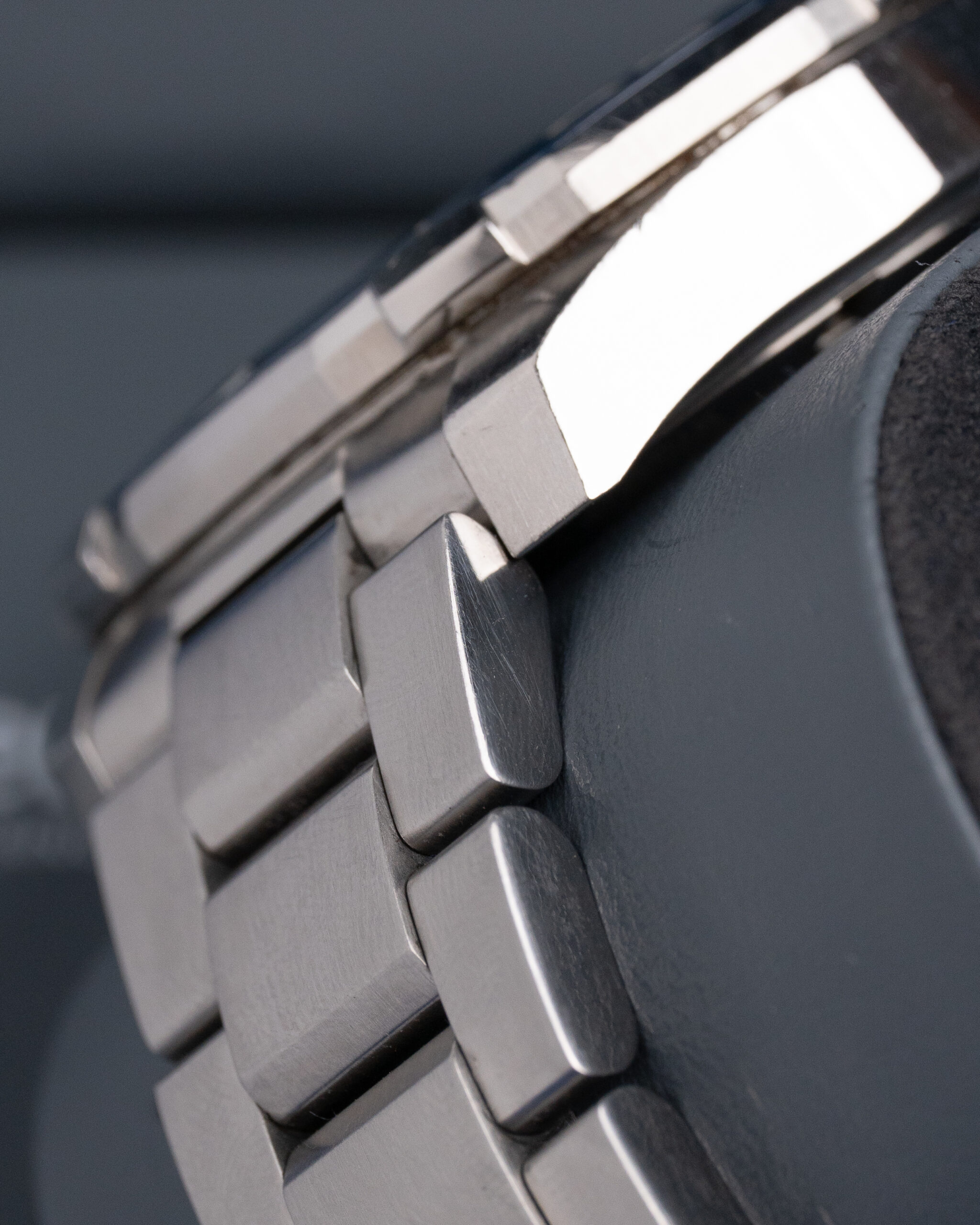 Stalowa koperta o średnicy 43 mm skrywa niebieską tarczę z poziomym giloszowaniem i luminescencyjnymi indeksami, które zapewniają doskonałą czytelność w każdych warunkach. Obracany bezel ceramiczny z podziałką minutową oraz szafirowe szkło zwiększają trwałość i funkcjonalność zegarka.