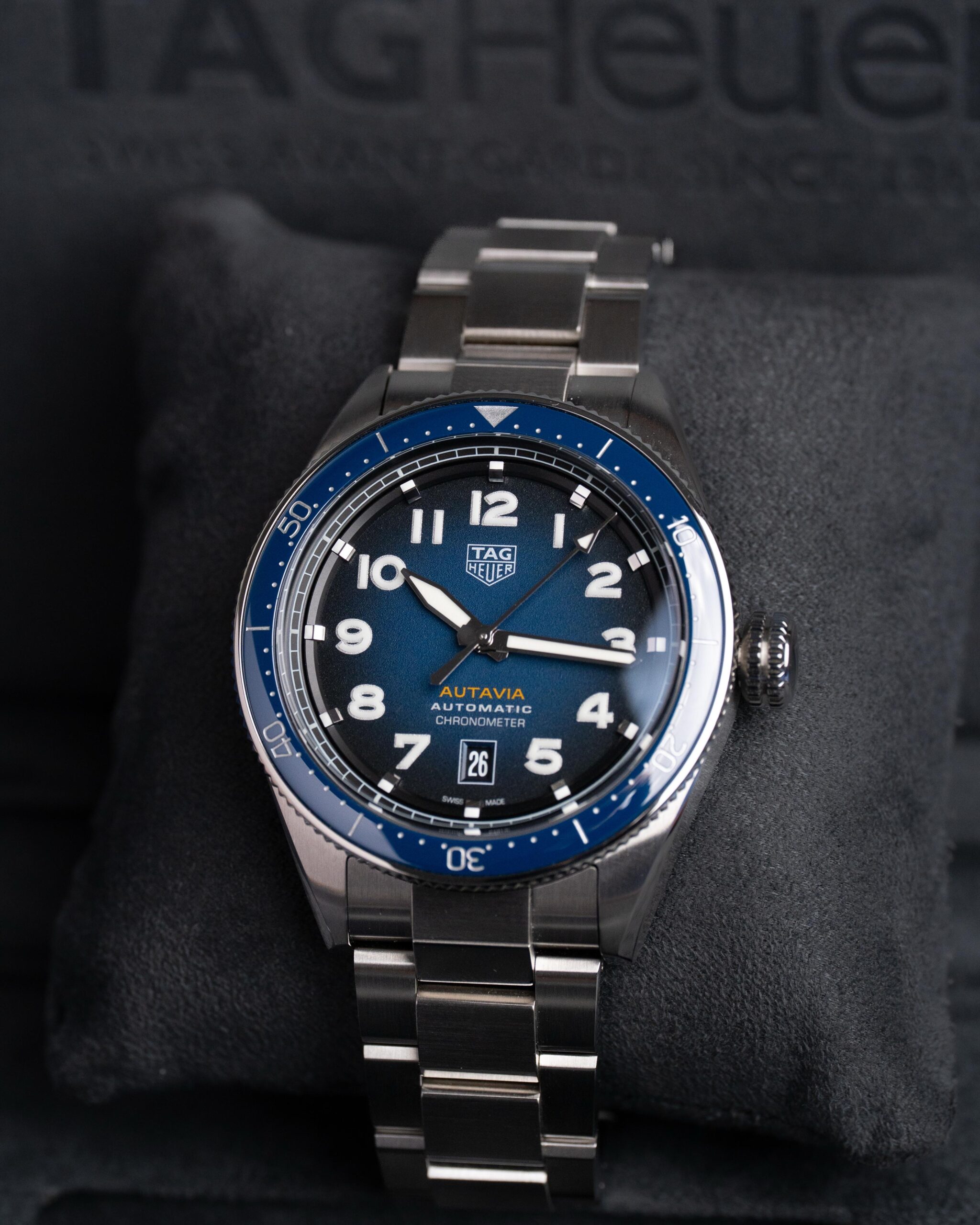 TAG Heuer Autavia WBE5116.EB0173 to elegancki i sportowy zegarek męski, który łączy historyczne inspiracje z linii Autavia z nowoczesną funkcjonalnością. Granatowa tarcza w połączeniu ze stalową kopertą o średnicy 42 mm nadaje zegarkowi wyrafinowanego charakteru, idealnego zarówno na co dzień, jak i do formalnych stylizacji.