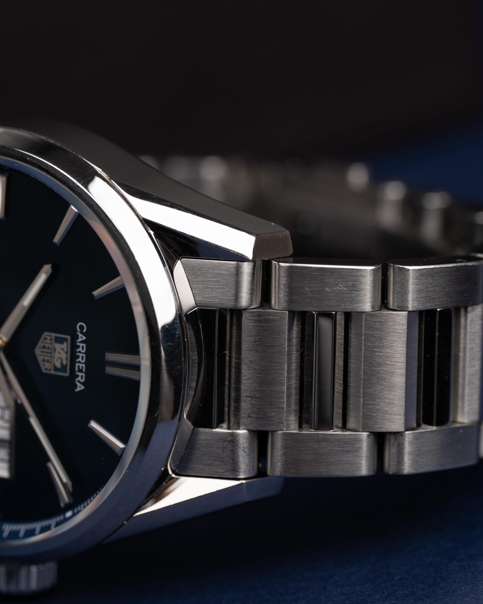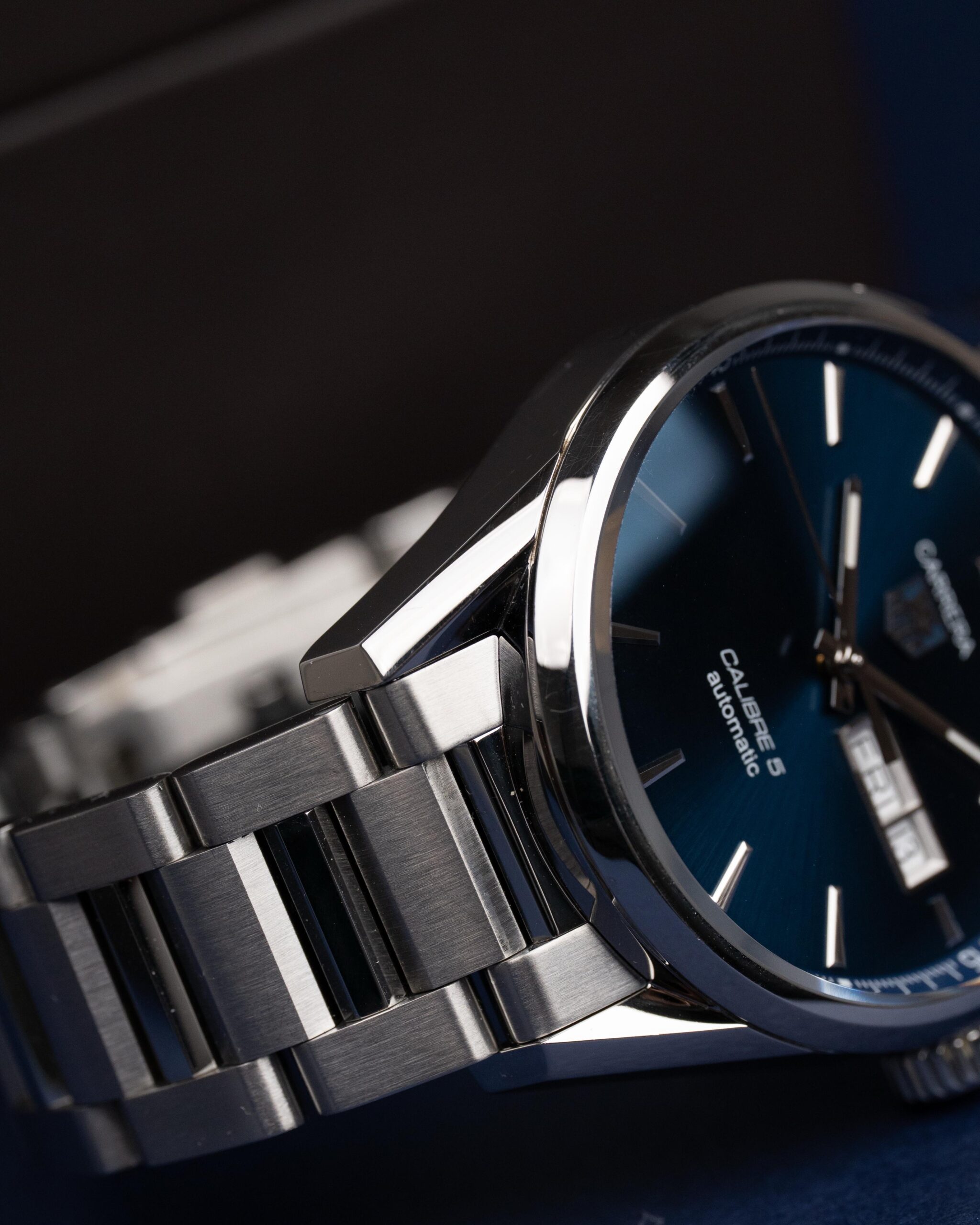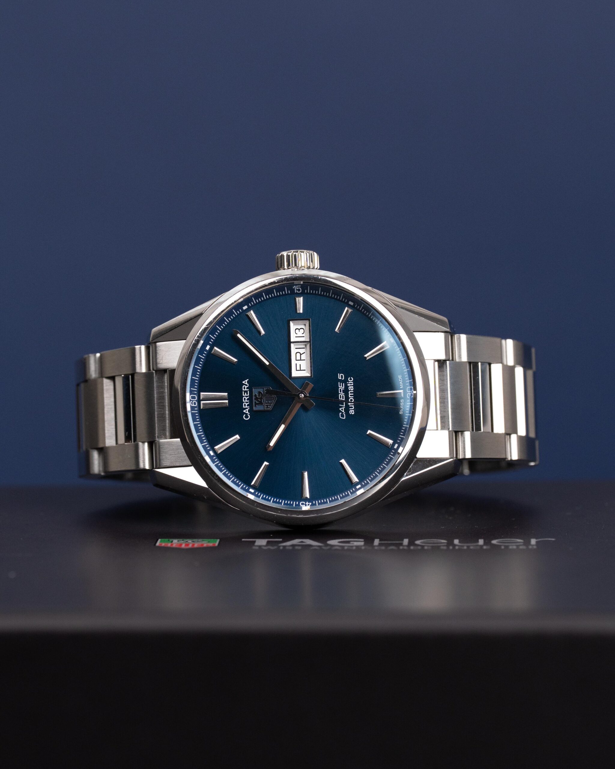 TAG Heuer Carrera Calibre 5 Day-Date ref. WAR201E.BA0723 to elegancki zegarek sportowy, który łączy klasyczny styl Carrery z praktyczną funkcją dnia i daty. Granatowa tarcza o delikatnym szlifie słonecznym nadaje mu nowoczesny, a zarazem ponadczasowy charakter.