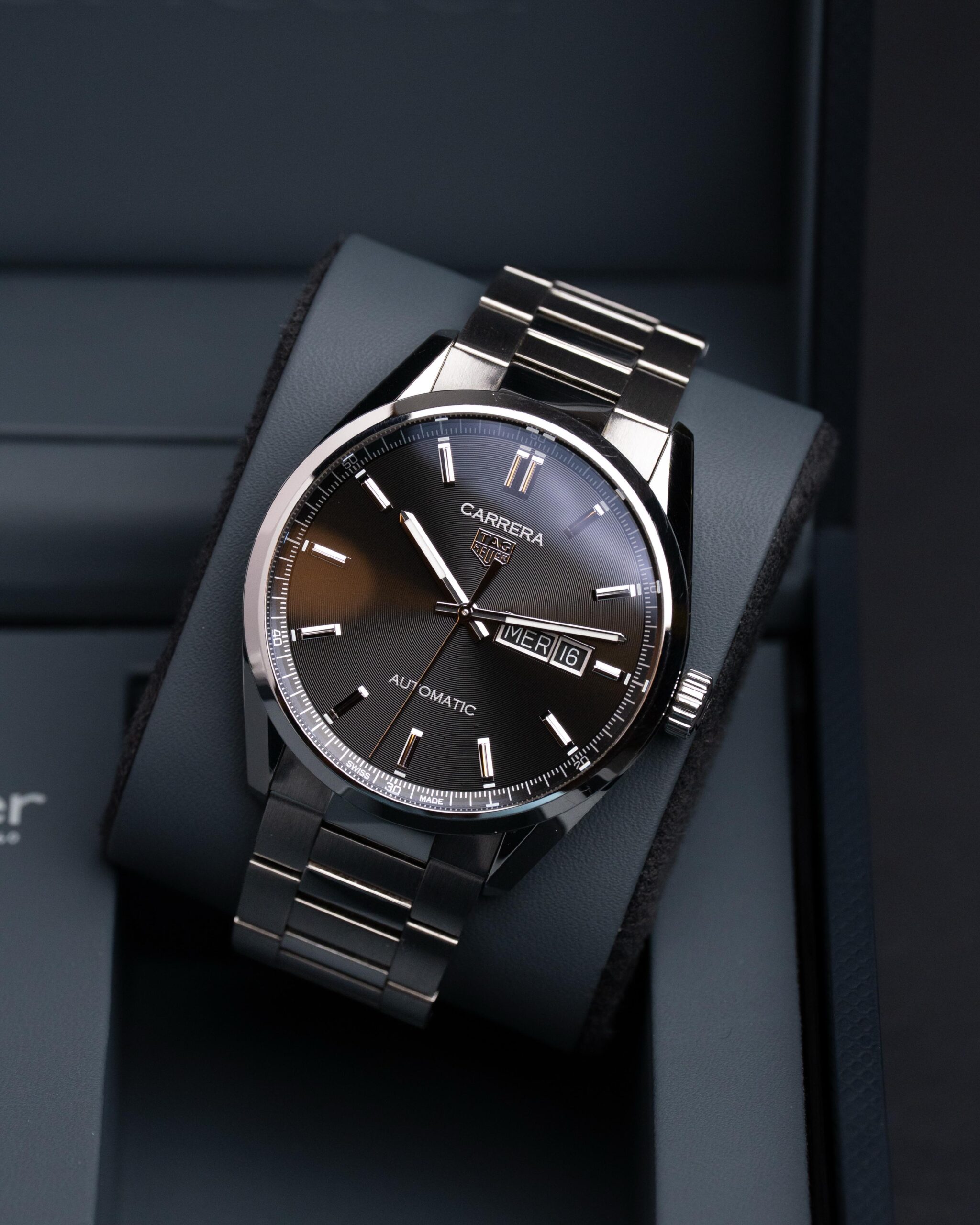 Sercem zegarka jest automatyczny mechanizm TAG Heuer Calibre 5, ceniony za niezawodność i precyzyjne działanie. Solidna konstrukcja i wysoka wodoszczelność sprawiają, że model ten świetnie sprawdza się zarówno na co dzień, jak i podczas formalnych okazji.