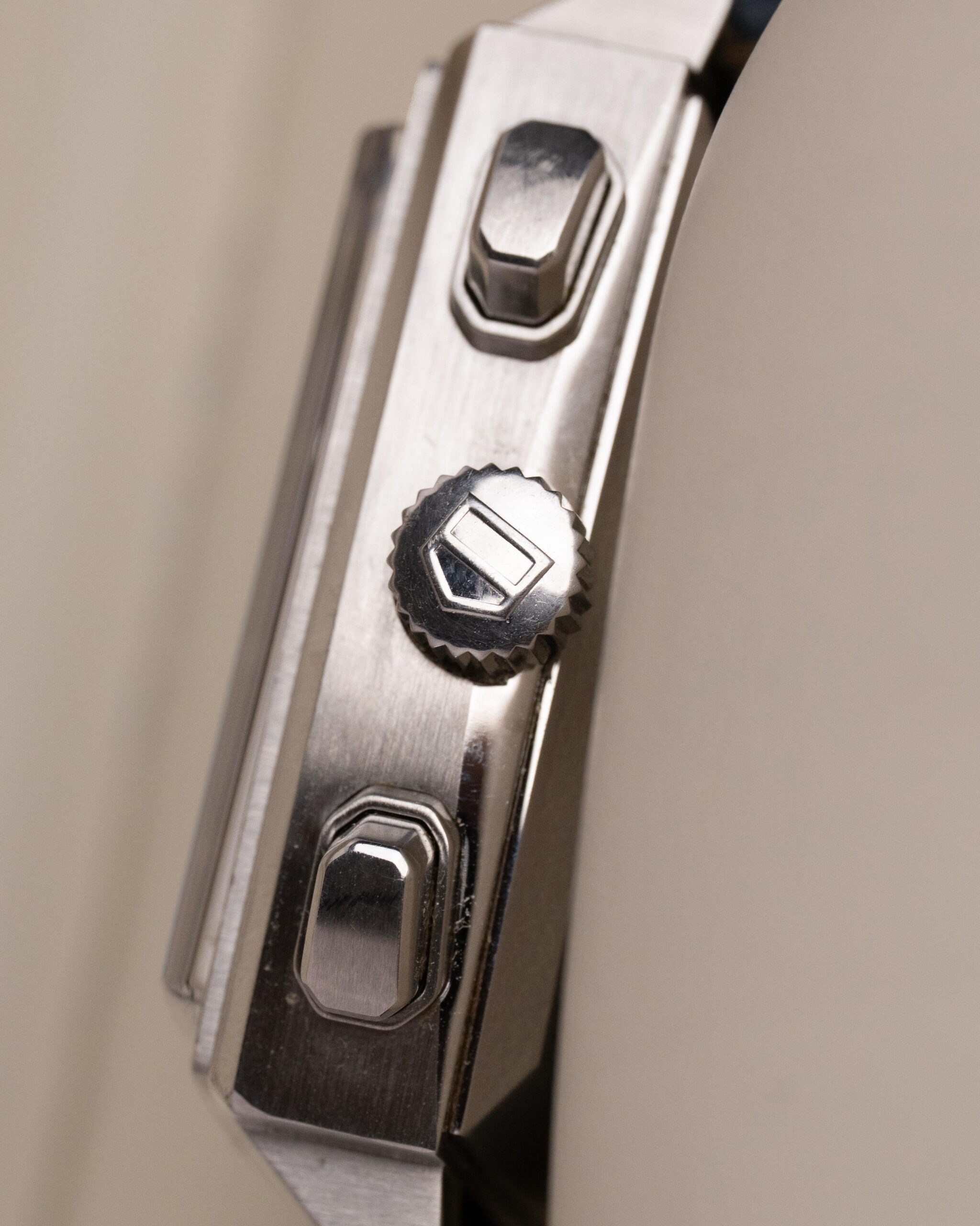 Model Monaco to nie tylko zegarek — to legendarny symbol wyścigów i stylu vintage. Jego odważna, kwadratowa koperta i głęboka, niebieska tarcza z kontrastującymi subtarczą das̨ przypomnieniem o motorsporcie lat 60. i 70. przyciągają uwagę miłośników zegarków i fanów kultury racingowej.