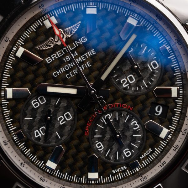 Breitling Chronomat 44 JSP AB01153A/BH26 to wyjątkowy, limitowany zegarek z kolekcji Chronomat, stworzony dla kolekcjonerów i miłośników profesjonalnych chronografów. Carbonowa tarcza nadaje zegarkowi nowoczesnego, sportowego charakteru, podkreślając jego prestiżowy i unikatowy wygląd. Koperta ze stali szlachetnej o średnicy 44 mm prezentuje imponującą obecność na nadgarstku, a tarcza z karbonu z kontrastowymi subtarczami chronografu zapewnia doskonałą…