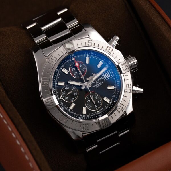 Breitling Super Avenger II ref. A13371 to potężny, sportowo-narzędziowy zegarek o mocnej prezencji — idealny dla osób ceniących duże rozmiary, techniczną funkcjonalność i charakterystyczny, dynamiczny styl marki Breitling. Model ten wyposażony jest w automatyczny mechanizm Breitling Calibre 13, znany z niezawodnej pracy i solidnej rezerwy chodu. Duża stalowa koperta o średnicy 48 mm emanuje pewną…