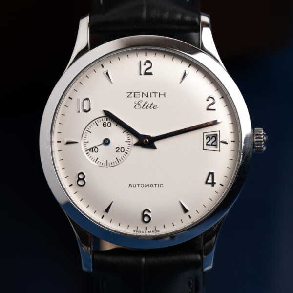 12 590,00 złZenith Elite Classic ref. 03.3100.670/01.C922 to współczesna interpretacja klasycznej elegancji, łącząca minimalistyczny design z perfekcyjnym rzemiosłem szwajcarskiej manufaktury. Zegarek napędzany jest automatycznym kalibrem Elite 670 SK, znanym z wysokiej precyzji i niezawodności, oferującym około 50 godzin rezerwy chodu. Stalowa koperta o średnicy 40,5 mm skrywa srebrną tarczę o delikatnym, giloszowanym wykończeniu, uzupełnioną smukłymi indeksami i…