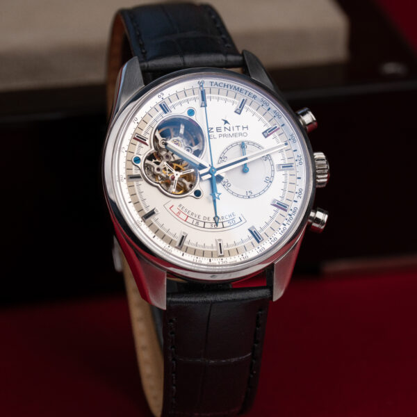 Zenith El Primero ref. 03.2080.4021/01.C494 to ikoniczny, sportowo-elegancki chronograf z najwyższej półki, który łączy historyczne dziedzictwo mechaniki z nowoczesnym wykończeniem. Model ten pochodzi z kultowej linii El Primero — zegarków napędzanych jednym z najsłynniejszych automatycznych mechanizmów chronografowych na świecie. Sercem czasomierza jest legendarny El Primero Calibre 4021 z wysoką częstotliwością pracy 36 000 A/h, co…