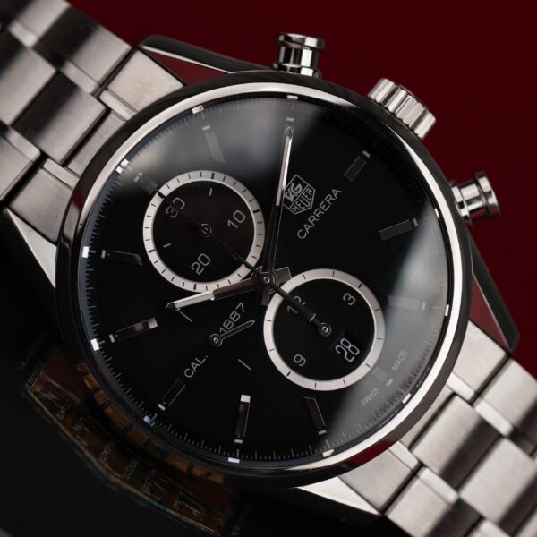 TAG Heuer Carrera Calibre 18 ref. CAR221A.FC6353 to stylowy, sportowy zegarek o wyraźnym charakterze vintage, który łączy klasyczny design z nowoczesną mechaniką. Model ten nawiązuje do historycznych chronografów Carrery, oferując elegancję i funkcjonalność w jednym. Zegarek napędzany jest automatycznym mechanizmem Calibre 18, wyposażonym w precyzyjny system stopera oraz funkcję małej sekundy, co podkreśla jego charakter….