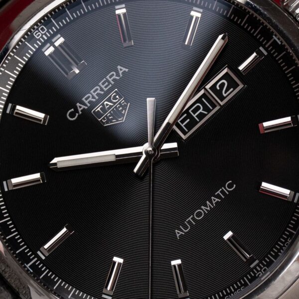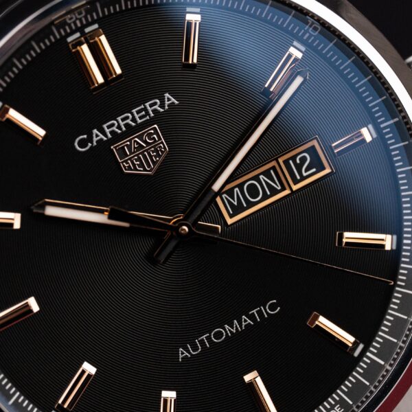 TAG Heuer Carrera Day-Date ref. WBN2013.BA0640 to elegancki zegarek sportowy, który łączy klasyczny styl kolekcji Carrera z praktyczną funkcjonalnością wskazania dnia tygodnia i daty. Wyrazista stylistyka oraz dopracowane detale sprawiają, że model ten świetnie sprawdza się zarówno na co dzień, jak i w bardziej formalnych stylizacjach. Sercem zegarka jest automatyczny mechanizm Calibre 5, zapewniający stabilną…